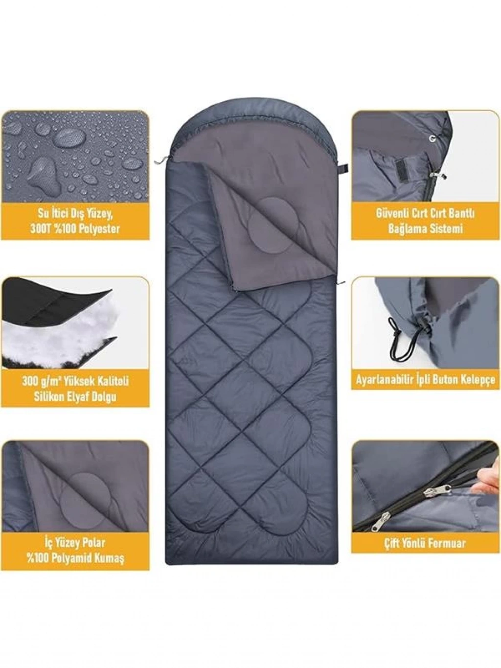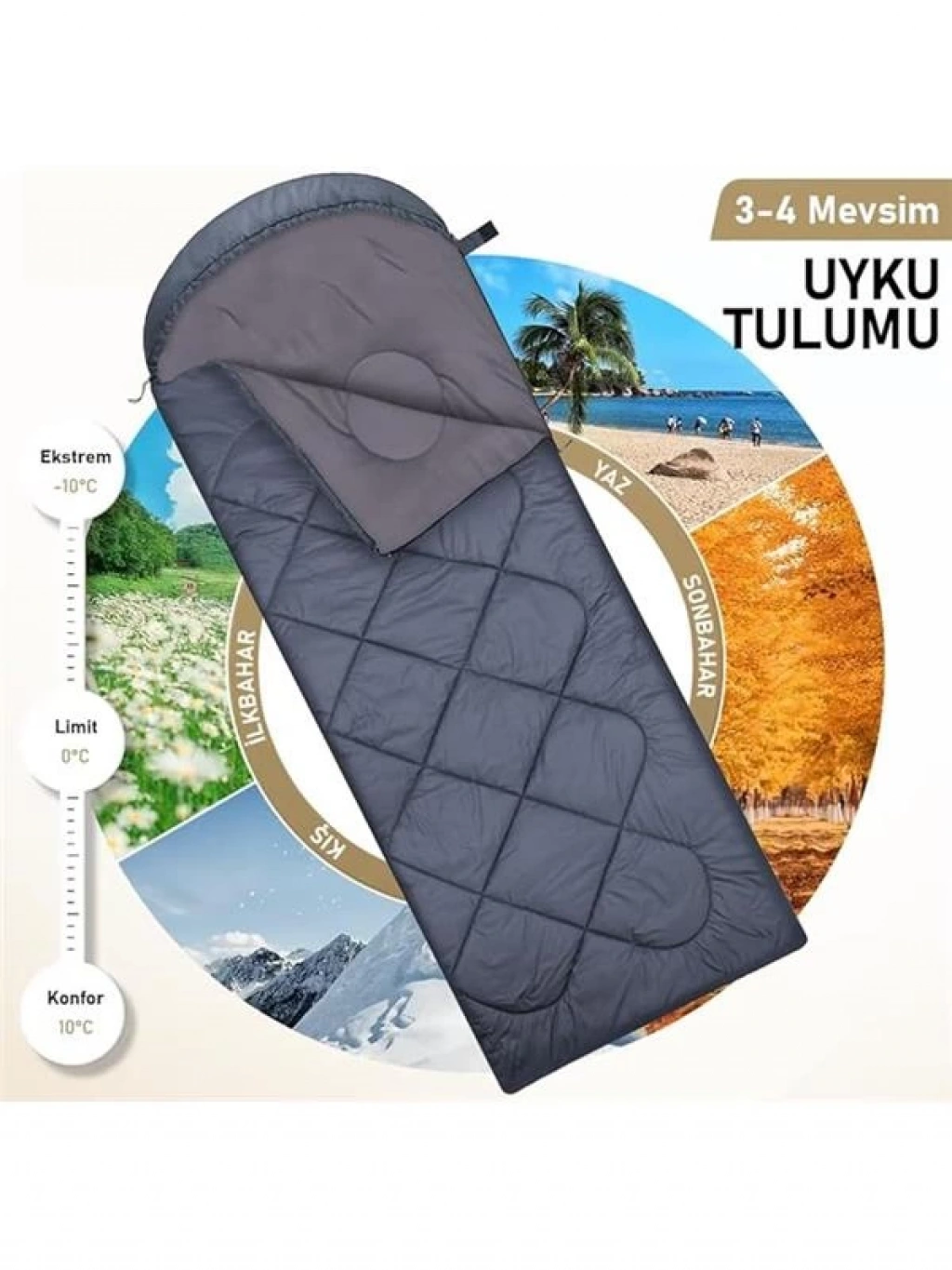 Bu ürün hakkında KONFORLU VE SICAK UYKU TULUMU Kamp uyku tulumunun dış kumaşı su itici özellikli 100 polyesterden oluşur iç astar 100 Polyamid Polar kumaştır ve 300 gmlik yüksek kaliteli silikon elyaf dolgu sıcaklık ve uzun ömür sağlar Kış uyku tulumunun sıcaklık aralığı Konfor 10C Limit 0C Ekstrem 10C ve farklı sıcaklıklar dikkate alınarak farklı mevsimlerde ve farklı sıcaklıklarda sıcak bir uykunun tadını çıkarabilirsiniz HAFİF VE TAŞINABİLİR Uyku tulumunun boyutu (190 30) x 75 cmdir ve uyku sırasında size daha fazla özgürlük ve konfor sunmak için yeterli alan sunar 36 x 18 cm saklama çantası boyutu ve sadece 16 kg ağırlığı ile hafif ve taşınabilir hiking veya seyahat etmenizi kolaylaştırır BENZERSİZ UYKU TULUMU Yüksek kontrastlı renk şemasına sahip yaz kış 34 mevsim uyku tulumu sadece göz alıcı bir tasarıma sahip değil aynı zamanda benzersiz kişiliğe sahiptir Ayrıca yazlık kışlık uyku tulumu uyku tulumunu rahatça yanınıza almanızı sağlayan bir taşıma çantası ile donatılmıştır ÇOK FONKSİYONLU UYKU TULUMU Bu uyku tulumu sadece sıcak bir uyku ortamı sağlamakla kalmaz aynı zamanda benzersiz çok fonksiyonlu tasarımı ile de öne çıkar Outdoor dış mekan kamp uyku tulumu tamamen açılabilir ve size ek konfor sunmak için kolayca konforlu bir mat veya battaniyeye dönüştürülebilir ÇOK YÖNLÜ UYKU TULUMU Kamp yaparken seyahat ederken ister evde kullanın bu uyku tulumu ihtiyaçlarınızı karşılar Uyku tulumunun esnek dönüşüm fonksiyonu onu farklı durumlar için uygun hale getirir ve size çok sayıda kullanım imkanı sunmak için rahat bir uyku ortamı yaratır