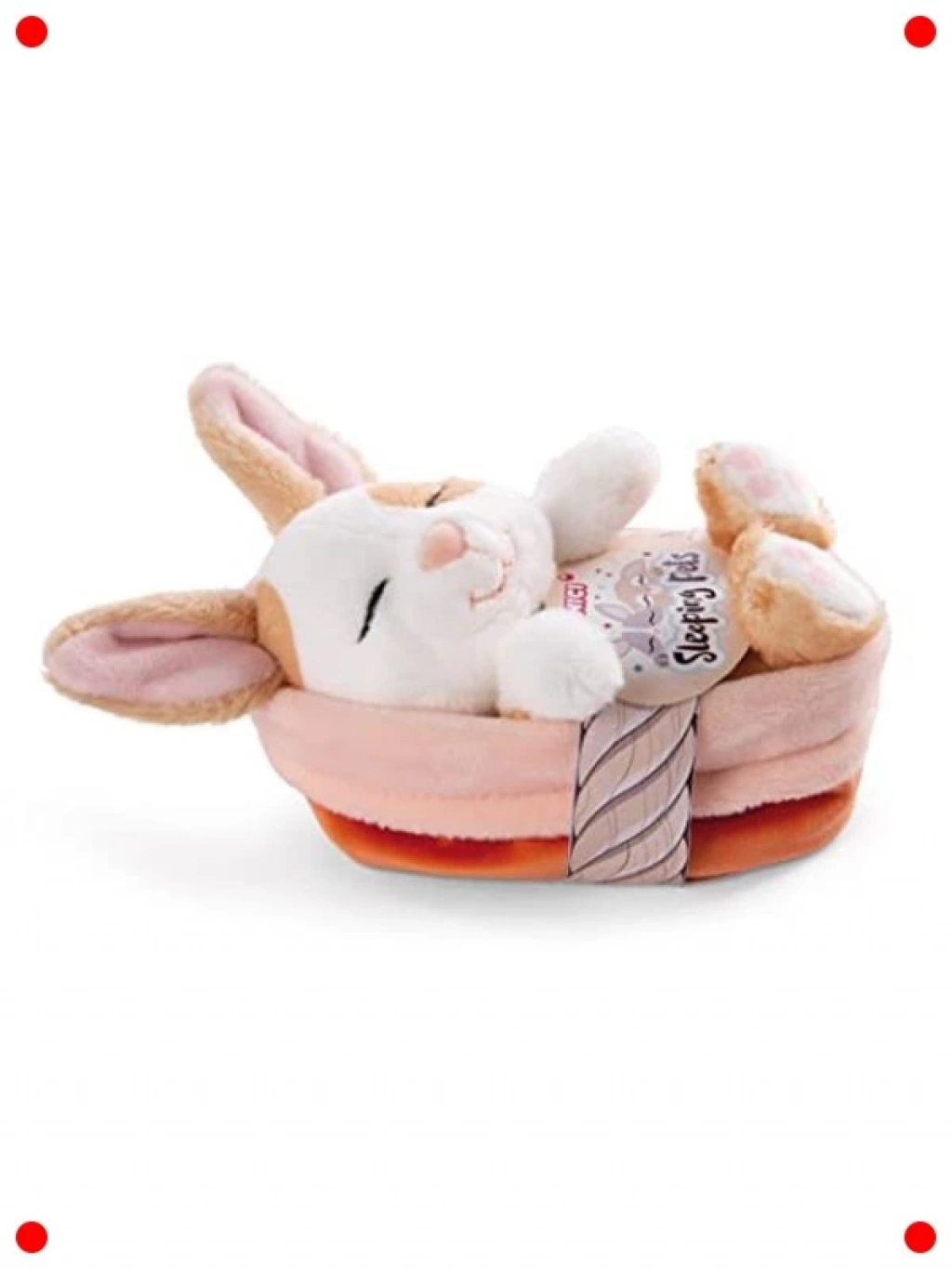 Bu sevimli peluş tavşan, miniklere huzurlu bir arkadaşlık sunar. Yumuşacık, kaliteli malzemelerden üretilen dokusuyla sarılmaya ve kucaklanmaya davet eden bu oyuncak, şeftali desenli minik bir sepet içinde dinlenirken adeta uykuya dalmış gibi görünür. 12 cm boyutuyla çocukların kolayca taşıyabileceği ve yanından ayıramayacağı ideal bir arkadaştır. Hem oyun saatlerinde hayal güçlerini harekete geçirirken hem de uyku öncesi sakinleşme anlarında çocukların vazgeçilmezi olacak bu peluş, onlara güvenli ve şefkatli bir arkadaşlık sunar. Çocuğunuzun odasına sıcak bir atmosfer katacak, aynı zamanda duyusal gelişimini destekleyecek harika bir seçimdir. Çocuk sağlığına uygunluğu test edilmiş ve onaylanmıştır.