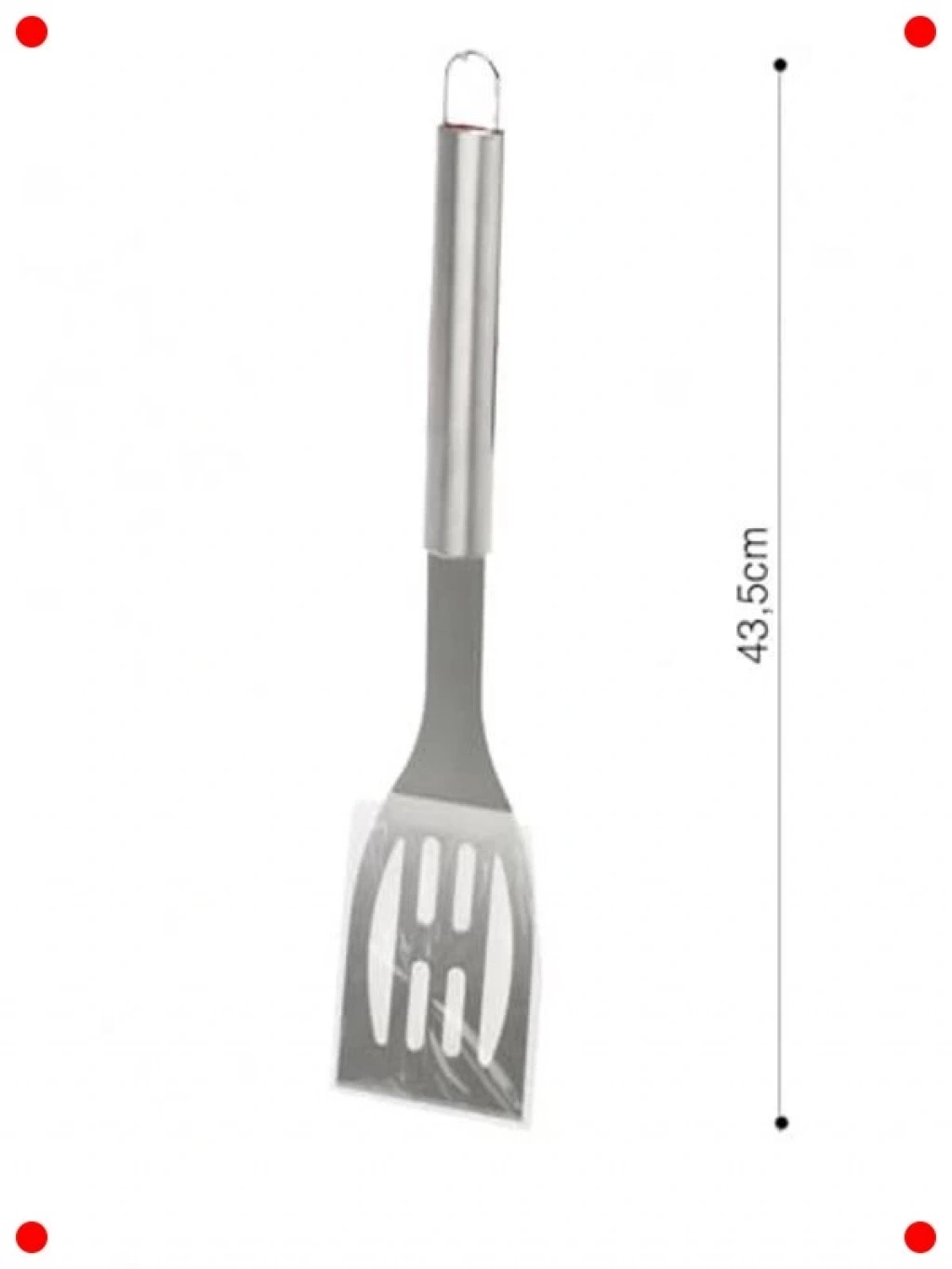 Barbekü keyfinizi mükemmelleştirecek uzun paslanmaz çelik spatula ile tanışın! 43.5 cm uzunluğu sayesinde, ızgaradaki et, balık veya sebzeleri çevirirken ellerinizi ısıdan korur ve güvenli bir kullanım sunar. Yüksek kaliteli paslanmaz çelikten üretilen bu spatula, ısıya ve paslanmaya karşı son derece dayanıklıdır, bu da uzun ömürlü bir kullanım garantiler. Geniş yüzeyi sayesinde büyük parçaları bile kolayca kaldırıp çevirebilirsiniz. Ergonomik sapı rahat bir tutuş sağlarken, kolay temizlenebilir özelliği sayesinde barbekü sonrası temizliği de zahmetsizdir. Her barbekü ustasının mutfağında olması gereken pratik ve profesyonel bir araçtır.
