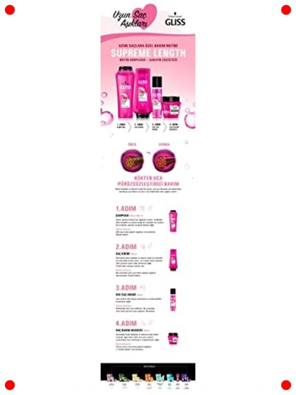 Uzun ve elektriklenmeye eğilimli saçların ihtiyaçlarına özel olarak tasarlanmış bu sıvı saç bakım kremi, saç tellerini kökten uca güçlendirir. Biotin kompleksi ve şakayık çiçeği özü ile zenginleştirilmiş formülü sayesinde saç kırılmalarını azaltmaya yardımcı olurken, saçlara ipeksi bir yumuşaklık ve parlaklık kazandırır. Durulama gerektirmeyen pratik yapısı sayesinde kolayca uygulanır ve saçları ağırlaştırmaz. Saçların kolay taranmasını sağlayarak düğümlenmeleri önler. Isı şekillendirme araçlarına karşı koruma sağlar. Günlük kullanım için ideal olan bu kremle saçlarınız daha sağlıklı, güçlü ve göz alıcı bir görünüme kavuşur.