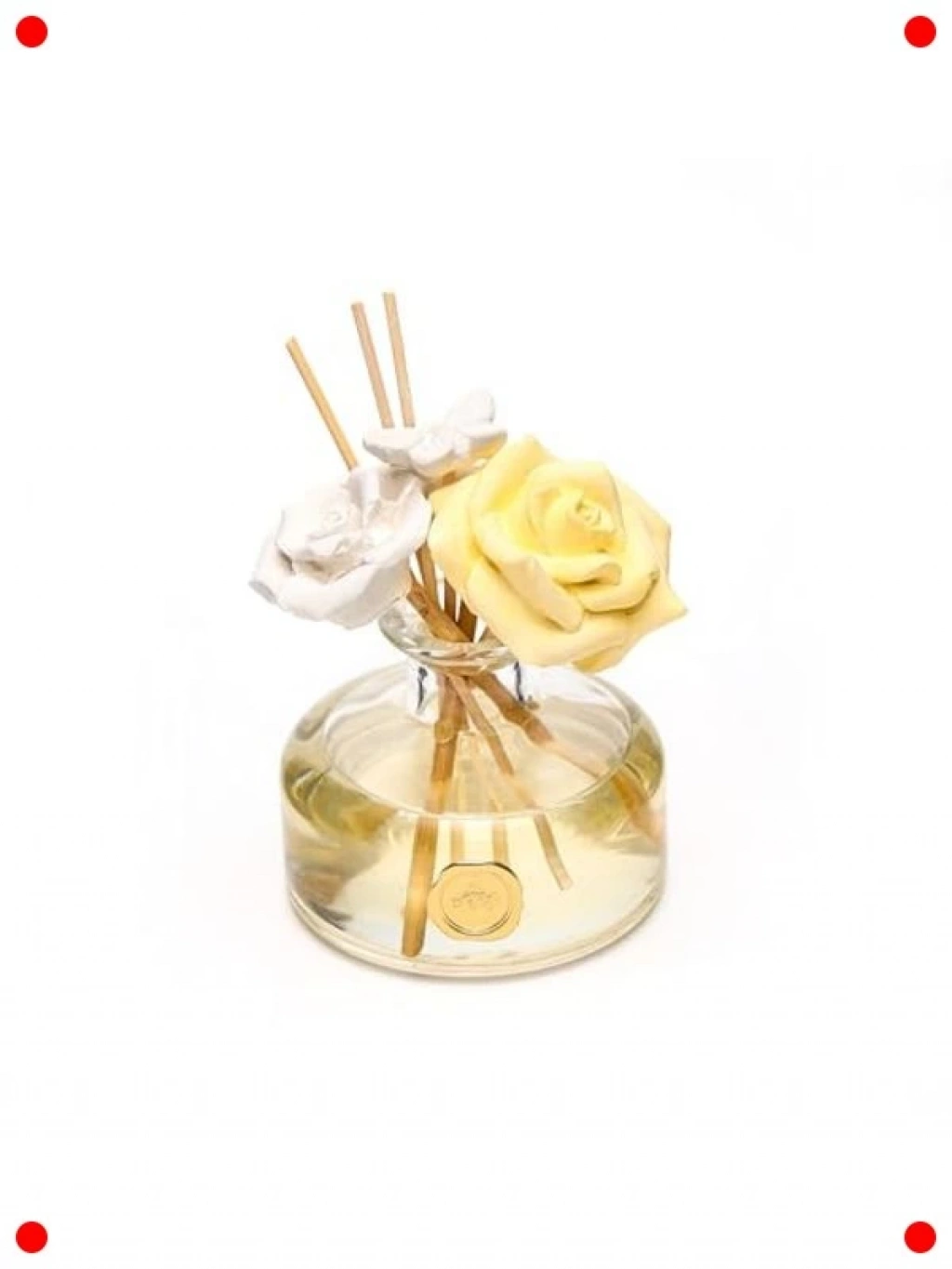 Evinizin atmosferini dönüştürecek bu zarif vanilya sandal oda kokusu ile yaşam alanlarınıza davetkar bir ambiyans katın. 150 ml'lik şık cam şişesi, dekoratif seramik çiçeği ve taş çubuklarıyla estetik bir görünüm sunar. Tatlı vanilya ve sıcak sandal ağacının eşsiz uyumu, odanızda uzun süre kalıcı, huzur verici ve lüks bir koku bırakır. Yatak odası, salon veya banyonuzda kullanabileceğiniz bu özel koku, misafirlerinizi etkileyecek ve evinize ferah bir nefes katacaktır. Şık tasarımıyla hem koku hem de dekoratif obje olarak görev yapar.