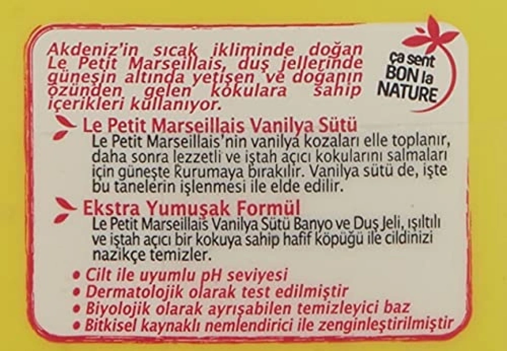 250 ml hacminde olan bu duş jeli, vanilya özlerinin doğal ve iştah açıcı kokusunu cildinize kazandırıyor. Elle toplanan vanilya kozalarının güneşte kuruması ile elde edilen bu formül, cilt ile uyumlu pH seviyesi sayesinde nazik bir temizlik sunar. Dermatolojik testlerden geçmiş bu ürün, biyolojik olarak ayrışabilen içeriklerle zenginleştirilmiş olup, bitkisel kaynaklı nemlendiricilerle cildinizi besler ve ferahlatır.