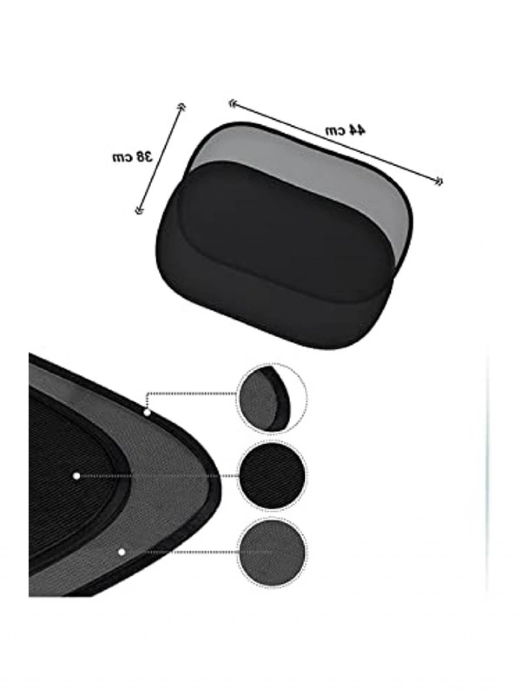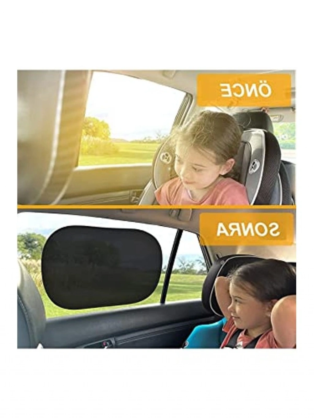 Vantuzlu arka yan cam güneşlik seti, özellikle bebekli aileler için tasarlanmıştır. 44 x 38 cm ölçülerine sahip olup, yan camlardan gelen güneş ışınlarını %70 oranında keser. Paket içeriğinde iki adet vantuzlu yan cam perde bulunmaktadır.