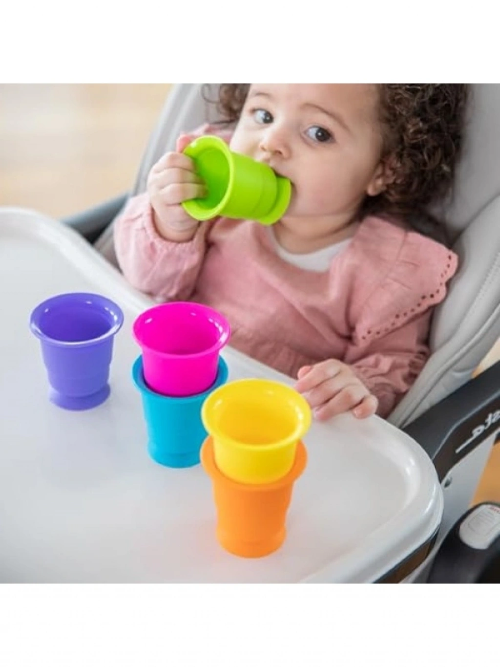 Bu çok fonksiyonlu set, her düz yüzeye yapışabilen 4 rengarenk vantuzlu bardak içerir. Çocuklar için eğlenceli bir oyun alanı sunarak, motor becerilerini geliştirmelerine yardımcı olur. Bardaklar, farklı yüzeylerde kullanılabilir ve ebeveynler tarafından atıştırmalık bardağı olarak da değerlendirilebilir. Su oyunları veya rol yapma oyunları için mükemmel bir seçenektir. 12 aydan büyük çocuklar için uygun olan bu set, hediye olarak da idealdir.