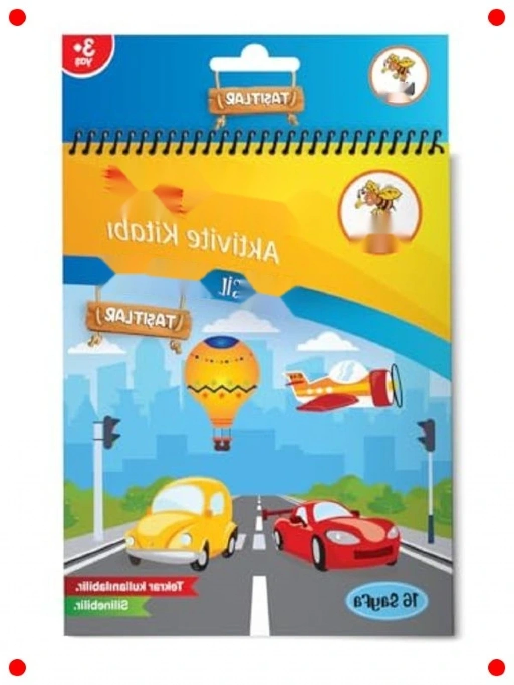 Eğlence bu " ve Sil" aktivite kitabı ile çocuklar favori araçlarını renklendirsin! Özel sfaları sesinde tekrar tekrar kullanılabilen bu kitap, çocukların yaratıcılıklarını özgürce ifade etmelerine olanak tanır. Kalemle çizim yaptıktan sonra nemli bir bezle kolca silinebilir, böylece yeni bir macera için hazır hale lir. Traktörlerden arabalara, uçaklardan milere kadar birçok farklı araç teması içeren bu kitap, çocukların motor becerilerini ve renk tanıma yeteneklerini liştirir. Seyahatlerde, evde veya okul öncesi eğitimde kullanılabilecek pratik ve eğlenceli bir öğrenme aracıdır. Toksik olman larla güvenle kullanılabilir.