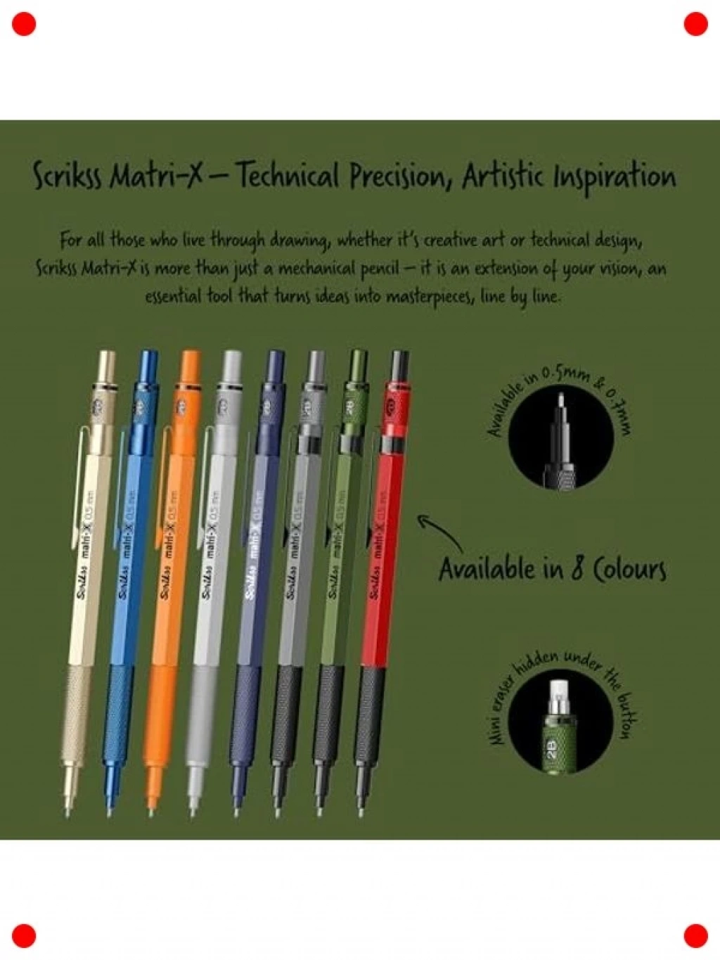 Detaylı çizimler ve hassas yazımlar için tasarlanmış bu 0.5mm versatil kalem ile yaratıcılığınızı ve üretkenliğinizi artırın. İnce ucu, grafik tasarımlardan teknik çizimlere, ders notlarından günlük yazıtlara kadar her alanda kusursuz çizgiler çekmenizi sağlar. Kalemin entegre silgisi, küçük hataları anında düzeltmenize olanak tanıyarak çalışma akışınızı kesintiye uğratmaz. Şık ve modern yeşil tasarımı, kaleme estetik bir hava katarken, hafif ve dengeli yapısı uzun süreli kullanımlarda bile rahat bir tutuş sunar. Dayanıklı mekanizması sayesinde uç kırılması sorununu en aza indirir ve her zaman güvenilir performans sağlar.