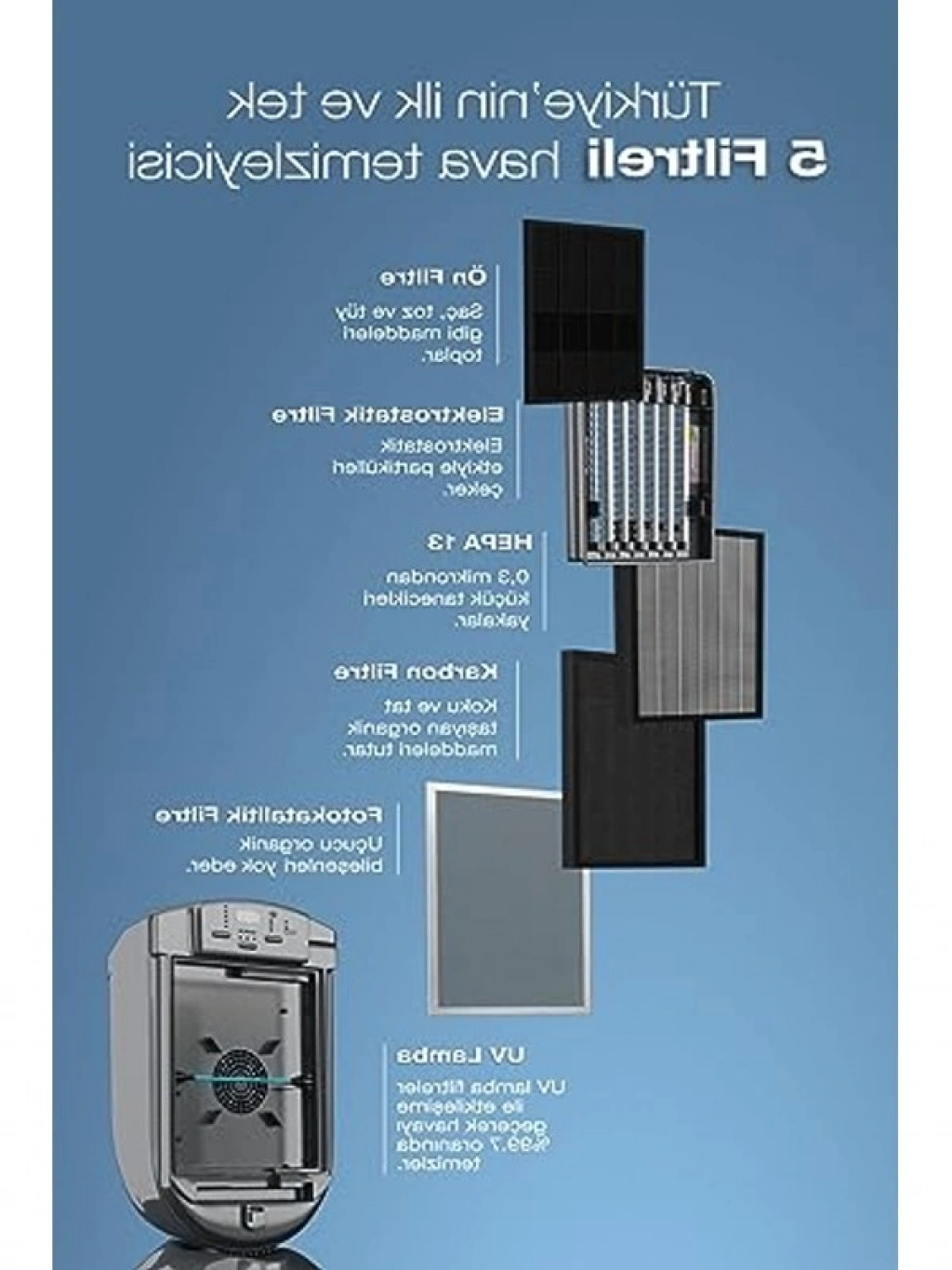 5 katmanlı gelişmiş filtreleme sistemi ile donatılmış hava temizleyici, 70 m² alana kadar etkili bir temizlik sunar. PM2.5 hava kalitesi sensörü, ortamınızın hava kalitesini sürekli izler. Otomatik mod ve zamanlanabilir çalışma özelliği ile kullanıcı dostudur.
