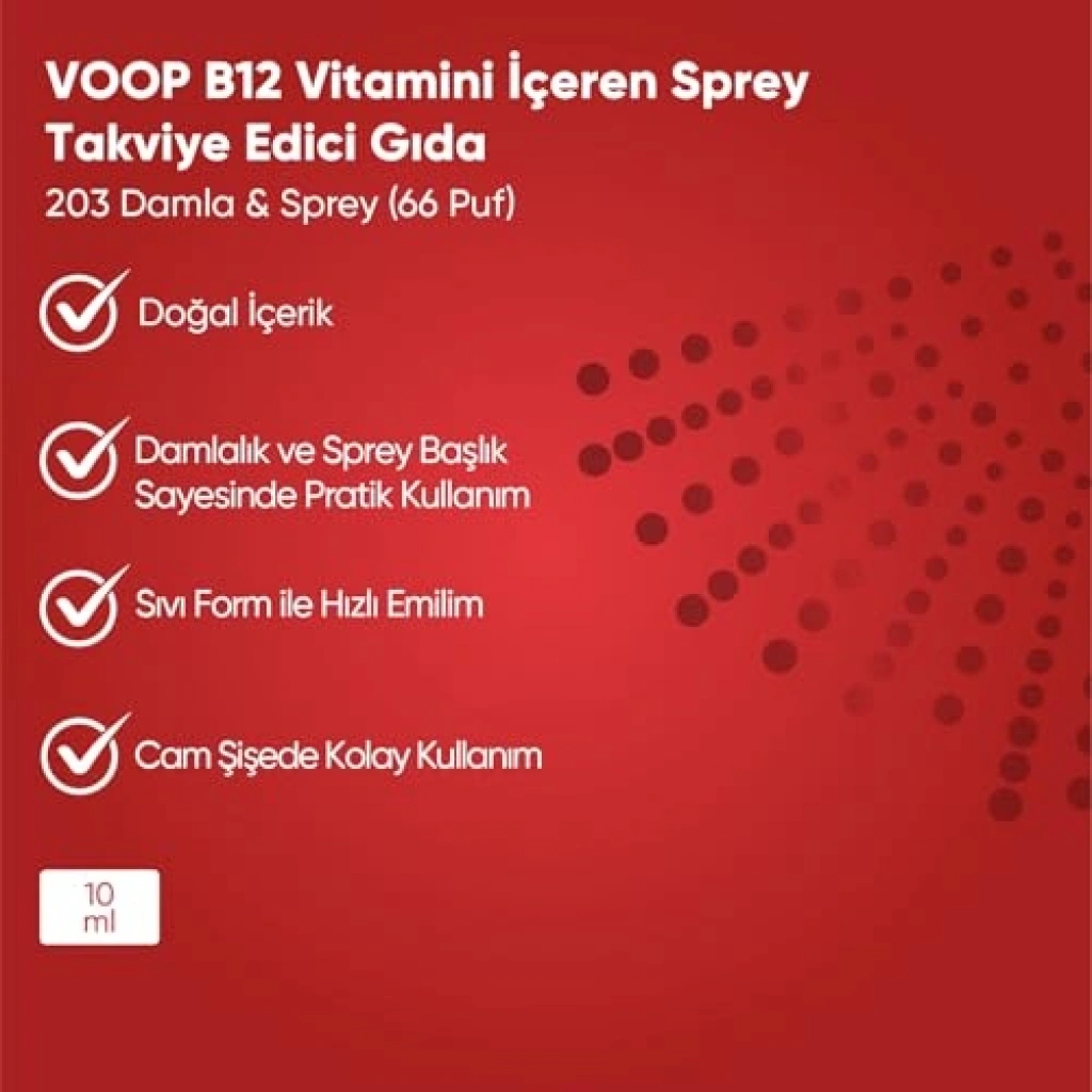 Üniseks kullanım için tasarlanmış Vitamin B12 Methylcobalamin spreyi, 10 ml hacmiyle pratik bir çözüm sunar. Enerjik ve dinç hissetmenize yardımcı olan bu ürün, günlük yaşamınızda ihtiyaç duyduğunuz besin takviyesini sağlar. Hızlı emilimi ile etkisini çabuk gösterir.