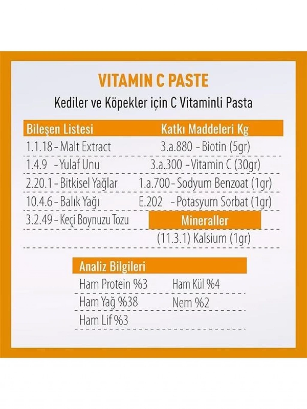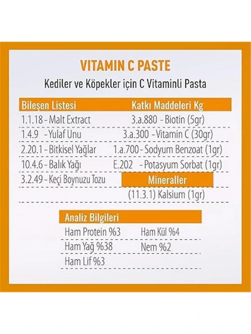 Vitamin C Kedi Ve Köpek C Vitamini Desteği Paste 100 Gr