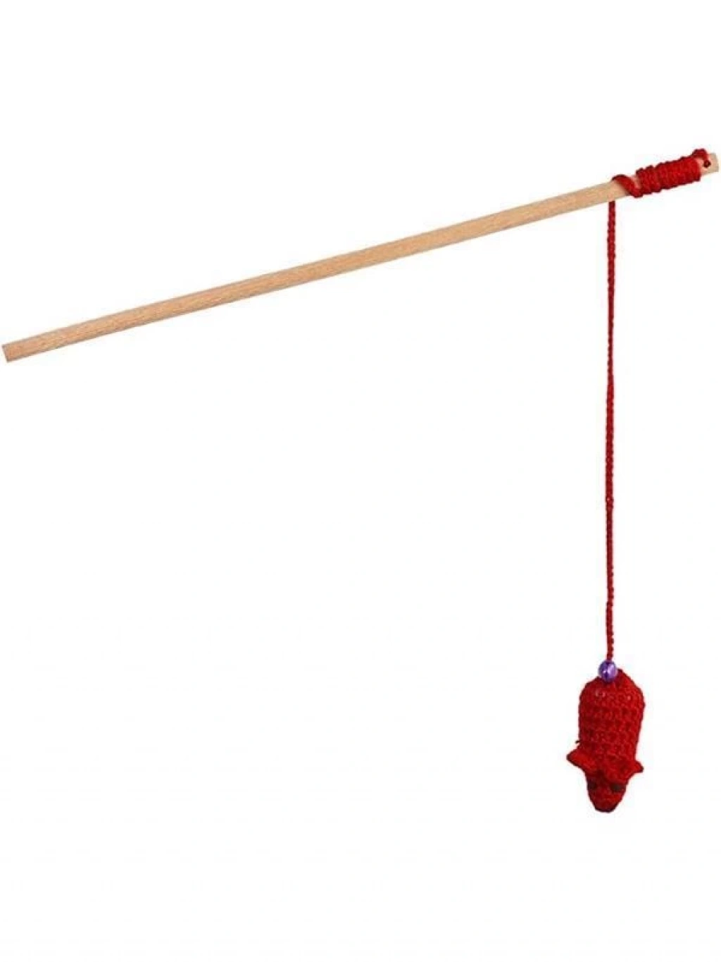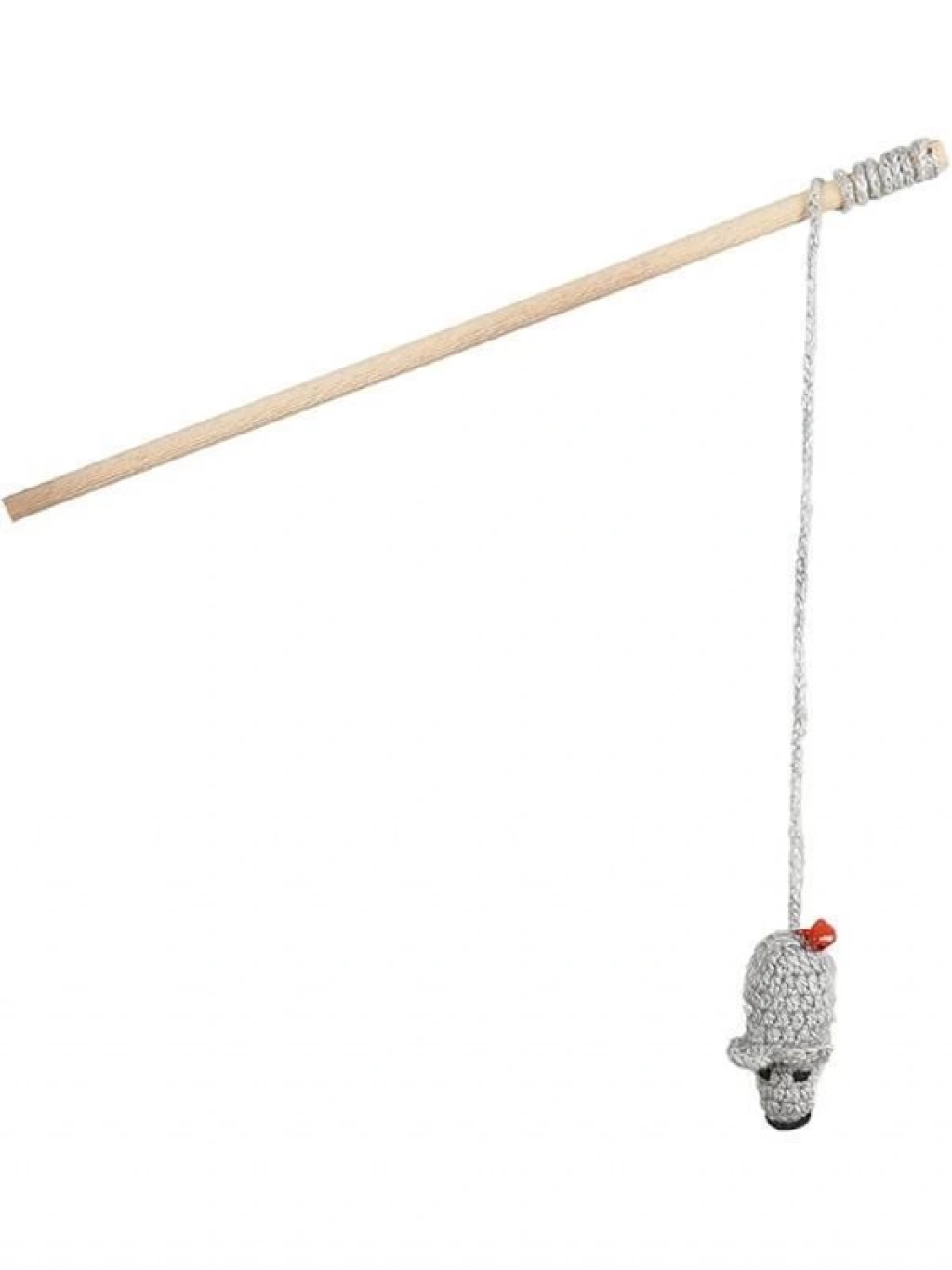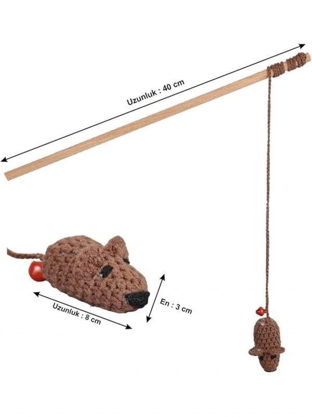 X-perk Ahşap Saplı Oyuncaklı Zilli Fare Örme Kedi Oltası Oyuncak