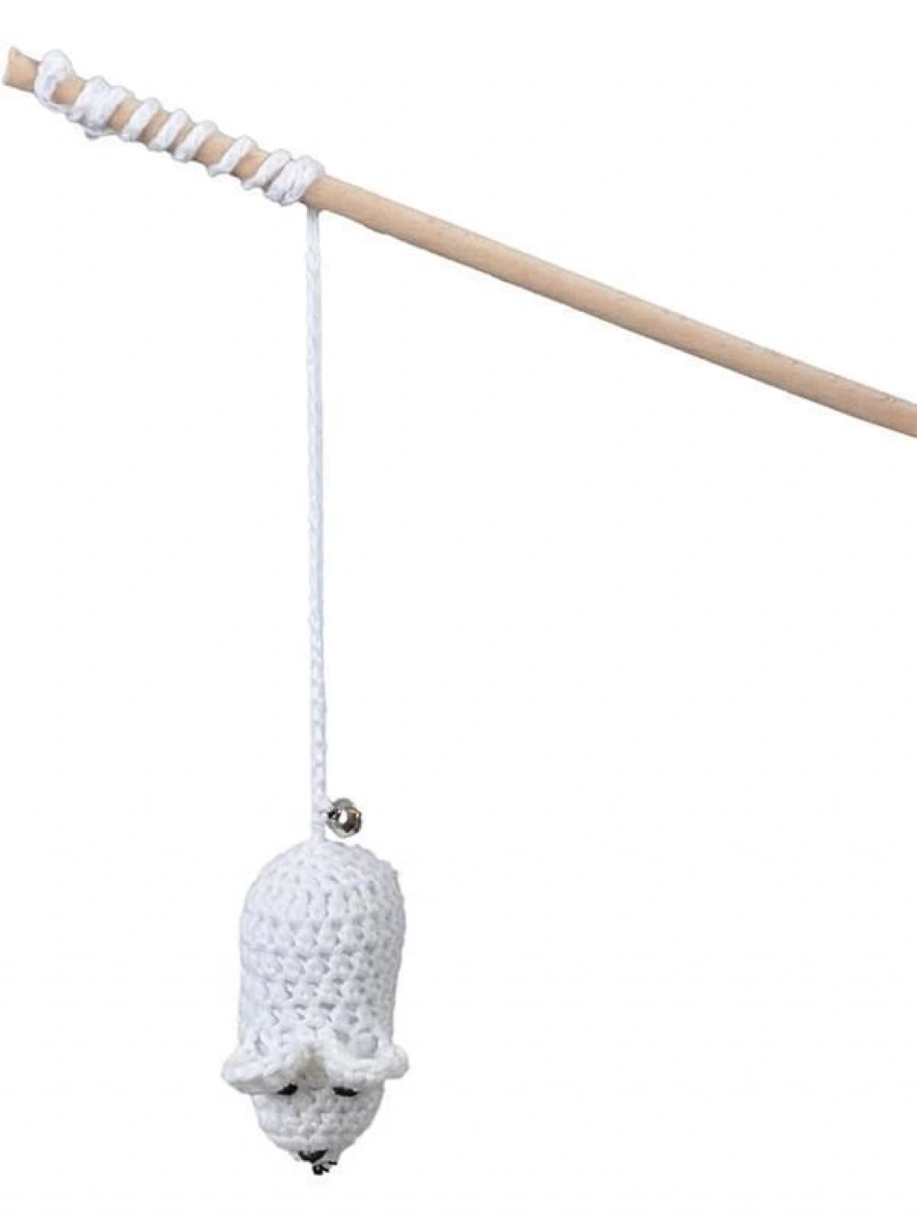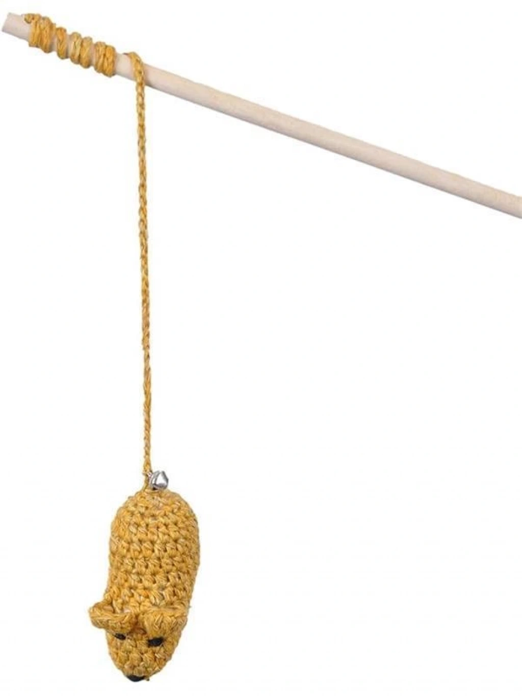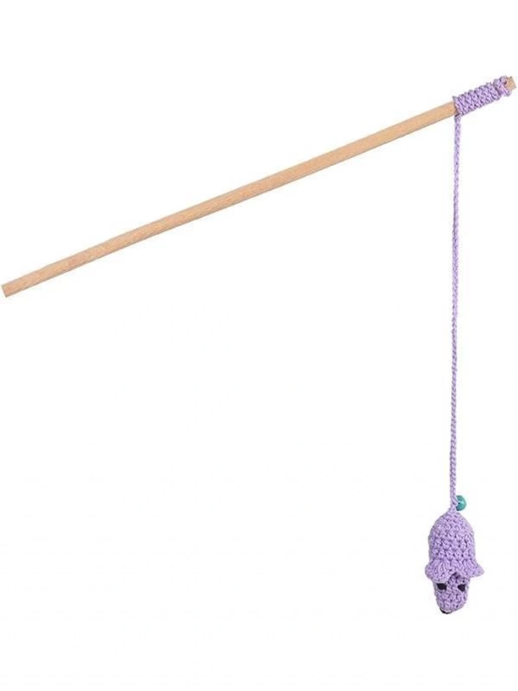 X-perk Ahşap Saplı Oyuncaklı Zilli Fare Örme Kedi Oltası Oyuncak