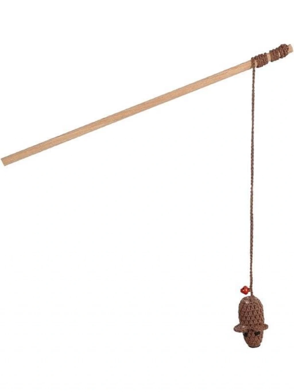 X-Perk Ahşap Zilli Kedi Oynatma Oltası Kedi Olta Kedi Oyuncak Ponponlu