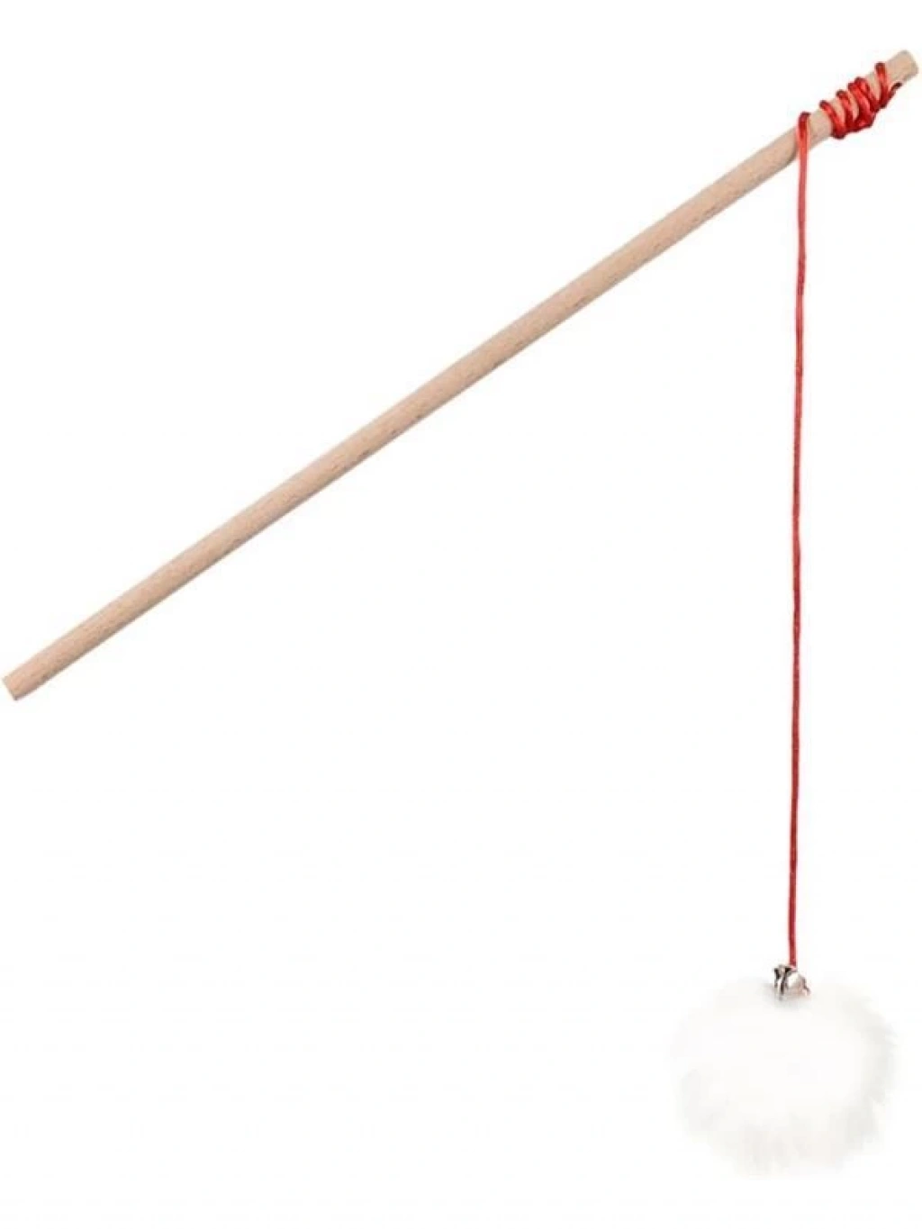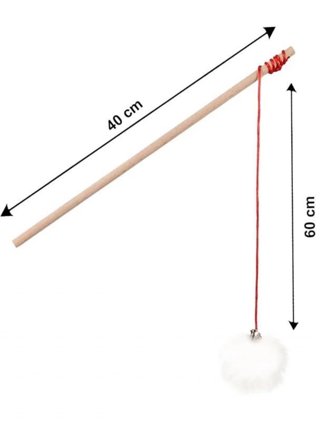 X-perk Ahşap Zilli Kedi Oynatma Oltası Kedi Olta Kedi Oyuncak Ponponlu