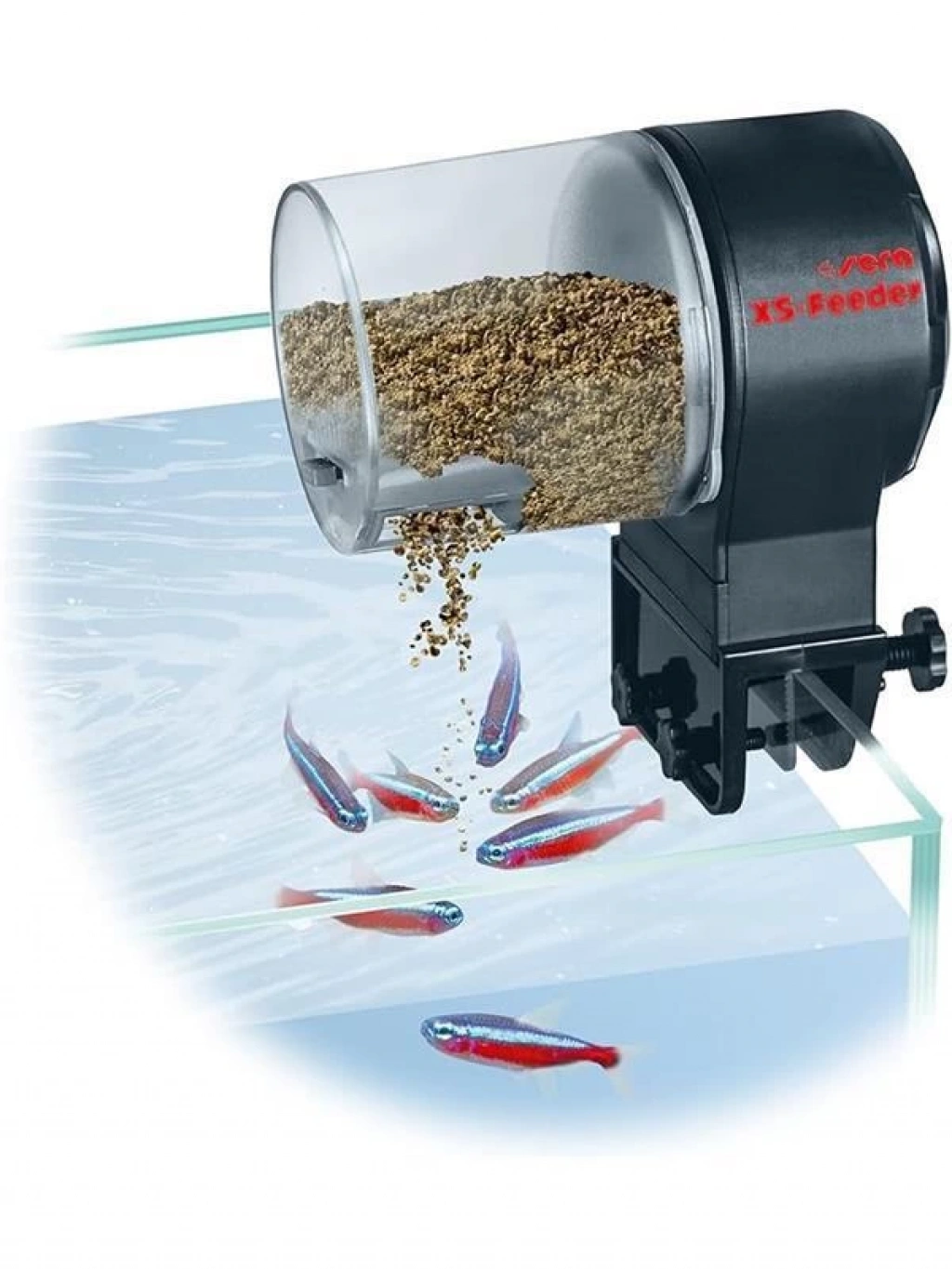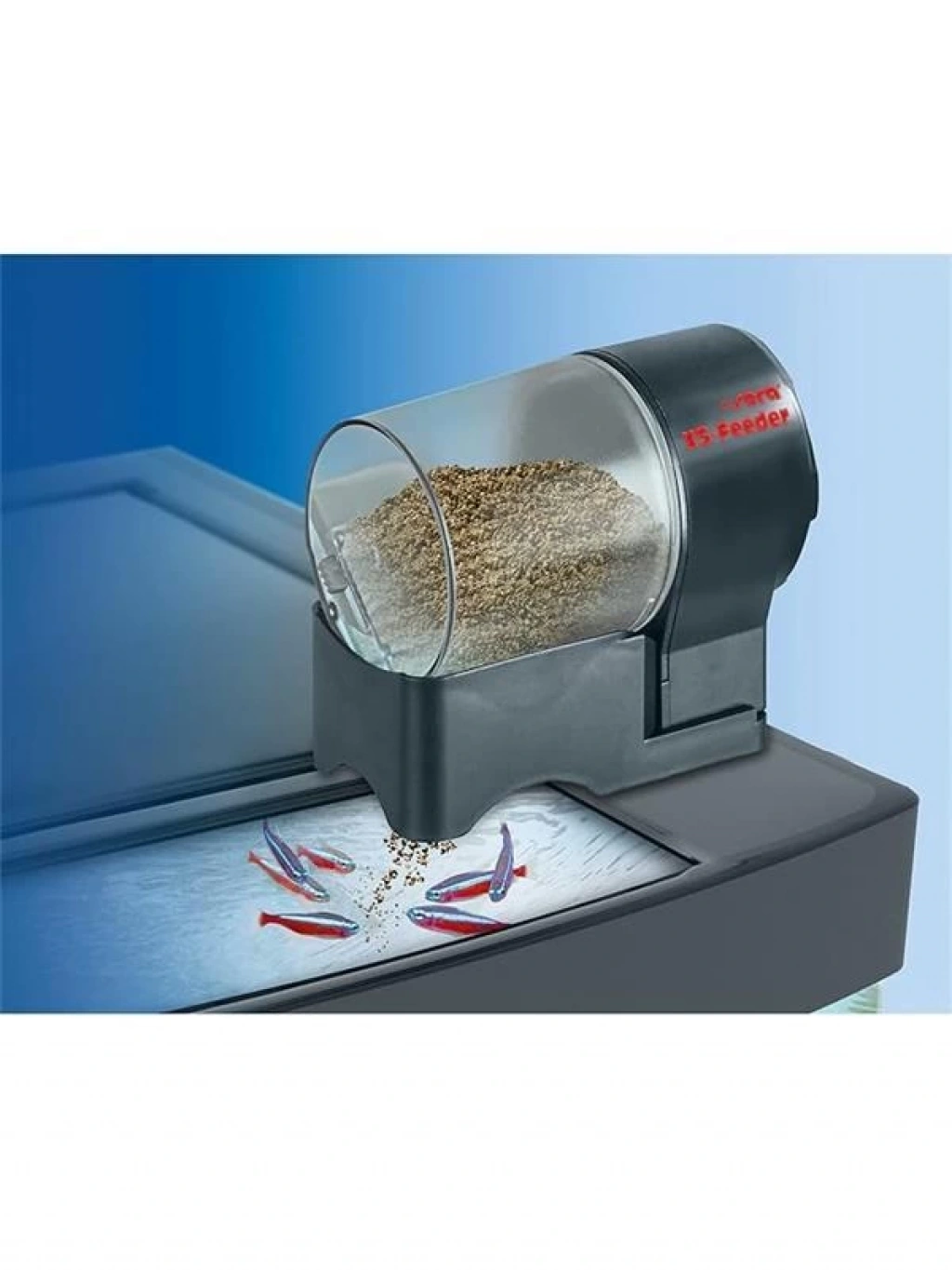 Bu ürün hakkında Yem otomatı 150 mllik büyük bir yem stoğuna sahiptir ve farklı boyutlarda granülleri beslemek için tasarlanmıştır Besleme işlemi başına yem miktarı bir sürgü ile kademesiz olarak ayarlanabilir Montaj için yem otomatı teslimat kapsamında bulunan platformla kapakların üzerine yerleştirilebilir veya aynı şekilde birlikte verilen tutma klipsi ile açık akvaryumların camına monte edilebilir