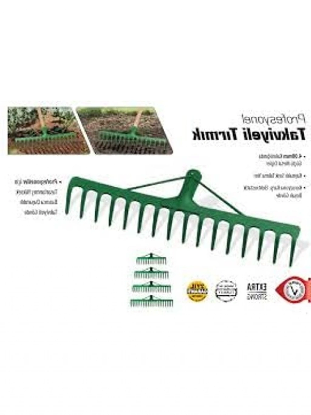 Yapı takviyeli metal bahçe tırmığı, 12 dişli tasarımı ile bahçe işlerinizi kolaylaştırır. Dayanıklı yapısıyla uzun ömürlü kullanım sunan bu alet, toprağı havalandırmak ve düzenlemek için idealdir. Bahçe bakımında pratik bir yardımcıdır.