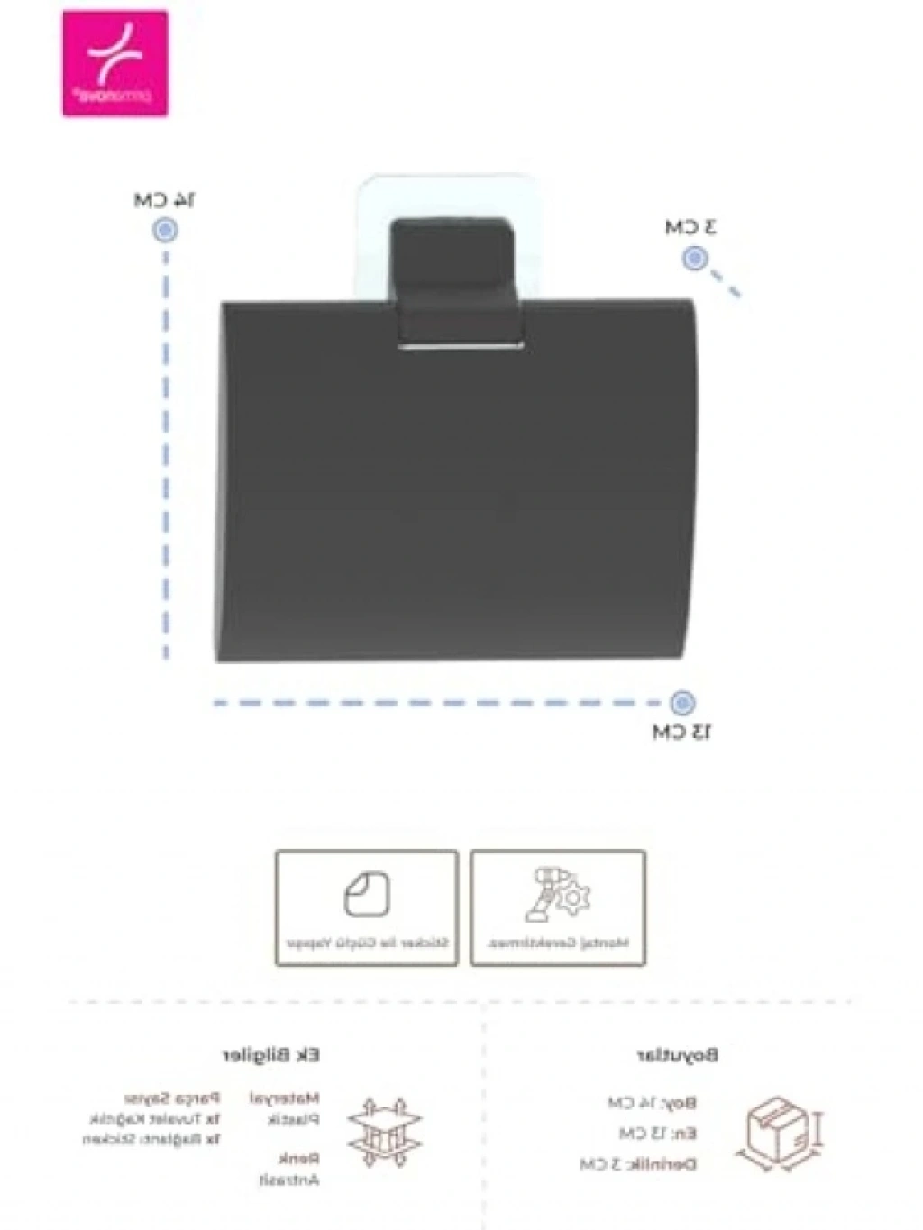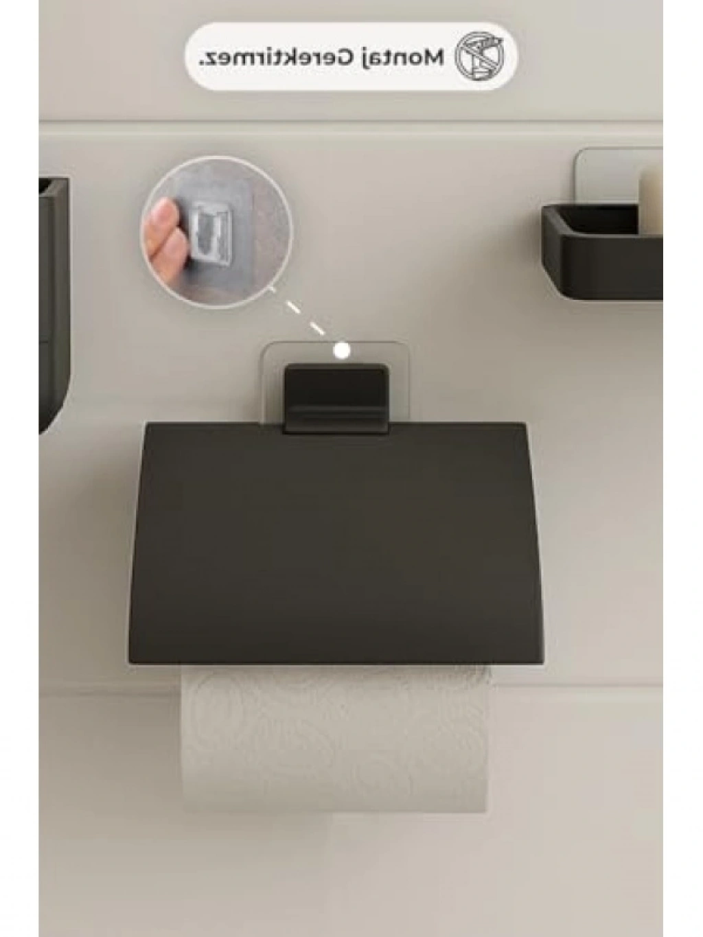 Bu yapışkanlı tuvalet kağıtlığı, hem şık hem de pratik bir çözüm sunar. Kurulum gerektirmeyen yapısı sayesinde her yerde kolayca kullanılabilir. Antrasit rengi ile modern bir görünüm sunarak, banyonuzun dekorasyonuna uyum sağlar. Dayanıklı yapısıyla uzun süreli kullanıma uygundur.