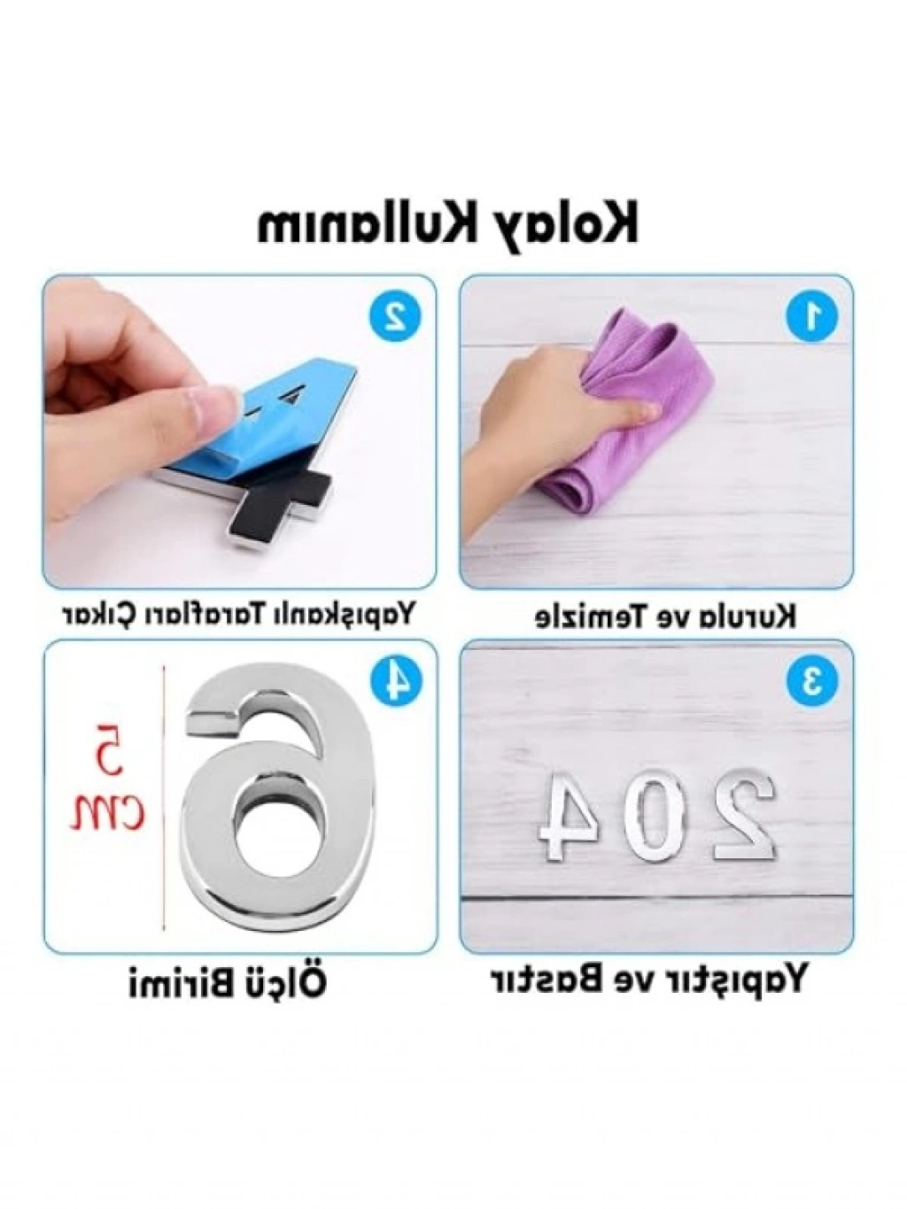 Bu yüksek kaliteli yapışkanlı kapı numarası, 50 mm boyutuyla dikkat çekici bir görünüm sunar. Krom rengindeki şık tasarımı, kapınıza modern bir dokunuş kazandırırken, sağlam yapısı uzun ömürlü kullanım imkanı sağlar. 1 adet numara ile, kapı numaralandırmalarında pratik ve estetik bir çözüm arayanlar için idealdir.