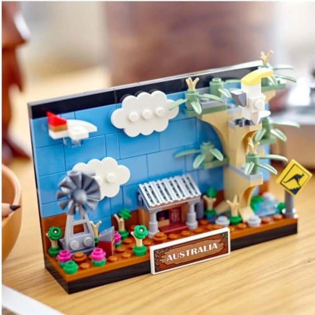 Yaratıcı yapım seti, çocukların Avustralya'nın ikonik yerlerini keşfetmelerine olanak tanır. 3D kartpostal olarak tasarlanan bu set, 10 cm yüksekliğinde ve 15 cm genişliğinde olup, içeriğinde ülke adını taşıyan plaket ve kanguru sokak tabelası da bulunmaktadır.