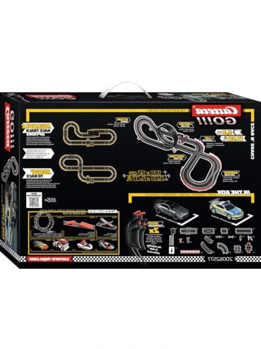 Bu heyecan verici yarış seti, 1:43 ölçekli iki yarış arabası ile birlikte gelmektedir. Turbo düğmeli hız kumandası sayesinde çocuklar, yarış sırasında heyecan dolu anlar yaşayabilirler. Kurulduğunda 180 x 75 cm'lik alan gerektiren bu set, arkadaşlarla birlikte oynayarak sosyal etkileşimi artırır ve eğlenceli vakit geçirme fırsatı sunar.