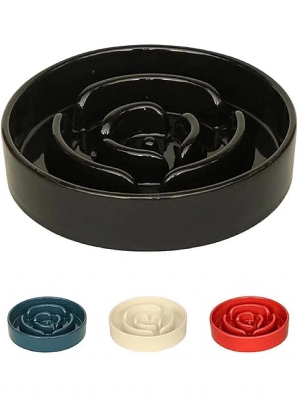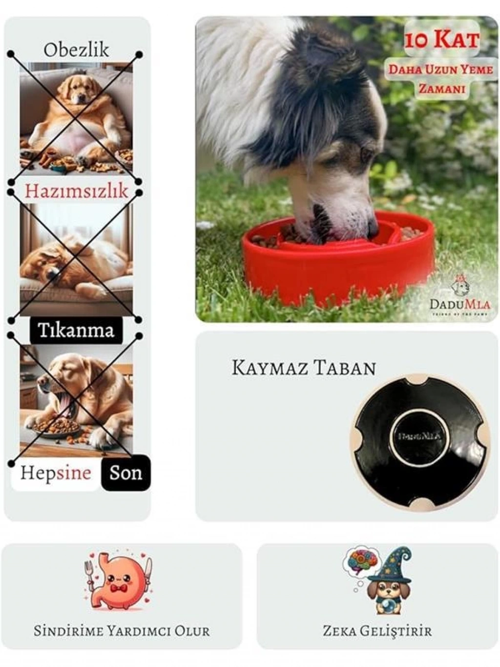 Bu ürün hakkında Yavaş Yemek Köpeğinize Sağlıklı Bir Diyet Sunar Hızlı yemek yiyen köpekler hazımsızlık kusma ve obezlik riskiyle karşılaşabilir Yavaş yeme kabımızın çıkıntıları ve labirent deseni köpeğinizin 10 kat daha yavaş yemesine yardımcı olur Köpeğiniz bu zorlu ve eğlenceli yemek zamanı sayesinde aşırı yeme alışkanlığını değiştirebilir Eğlenceli Tasarım Köpeklerin beslenmesini eğlenceli hale getiren renkli ve eğlenceli bir seramik kap Köpeğiniz İçin Seramik Malzeme Veterinerler köpekleriniz için seramik bir mama kabının kullanılmasını öneriyor Araştırmalara göre plastik kaplarda kolayca siyah lekeler oluşabiliyor Eğer köpeğinizi seviyorsanız seramik yavaş yeme kabımız en iyi seçiminiz olacaktır Bu köpek mama kapları seramikten yapılmıştır Mikrodalga fırında güvenle ısıtabilir köpeğinizin yemeğini her zaman taze ve sıcak servis edebilirsiniz Seramik Köpeğinizin Plastik Yememesini Sağlar Plastik yavaş yemek kaplarının köpekler tarafından kolayca zarar gördüğünü gözlemledik Köpekler yanlışlıkla ısırıp yiyebilirler ve plastik yüzey kullanım sırasında dökülebilir Bu da köpeklerin sağlıklı bir diyet yapmasına uygun değildir Biz seramik kullanıyoruz dayanıklı ve kolay zarar görmeyen bir malzeme Böylece köpeğiniz yemeğini güvenli ve sağlıklı bir şekilde tüketebilir Kolay Temizlik Daha Fazla Zaman Kazandırır Yüzeyi pürüzsüz ve çok kolay temizlenir Musluk altında durulamak veya bulaşık makinesine koymak temizlik işlerinizi daha hızlı halledebilir ve artan bu zamanı sevimli dostunuzla geçirebilirsiniz Kaymaz Taban Dağınık Zemine Elveda Bu seramik köpek kapları yeterince ağırdır (yaklaşık 148 kg) ve kaymaz tabana sahiptir böylece köpek yemek yerken kolayca hareket edemez Köpeğiniz kuru yaş veya çiğ gıda tüketiyorsa bu kaymaz kaplar işinizi görecektir
