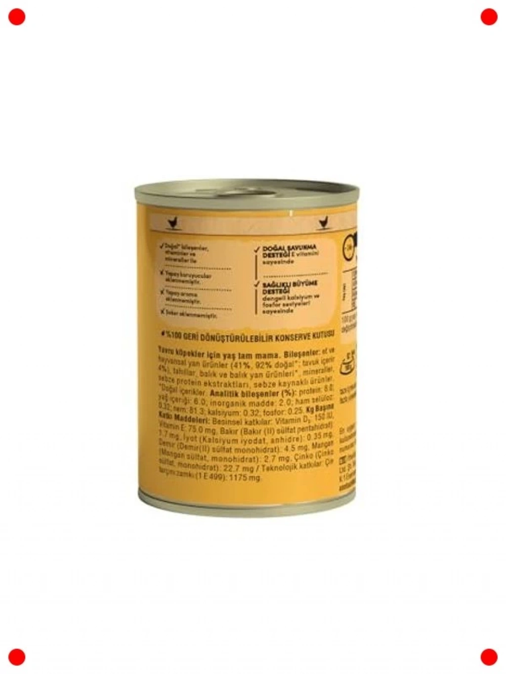 Yavru köpeğinizin sağlıklı büyüme ve gelişimi için özel olarak hazırlanmış, 24 adet 400 gramlık ekonomik yaş mama paketi. Bu mama, yavru köpeklerin ihtiyaç duyduğu yüksek kaliteli protein, vitamin ve mineralleri dengeli bir şekilde içerir. Kolay sindirilebilir yapısıyla hassas midelerine uyum sağlar ve sindirim sorunlarını en aza indirir. Yüksek su içeriği sayesinde yavru köpeğinizin günlük sıvı ihtiyacını karşılamasına yardımcı olur. Lezzetli formülü ile yavru köpeğinizin severek tüketeceği bu mama, güçlü kemik ve kas gelişimi ile sağlıklı bir başlangıç yapmasını destekler.