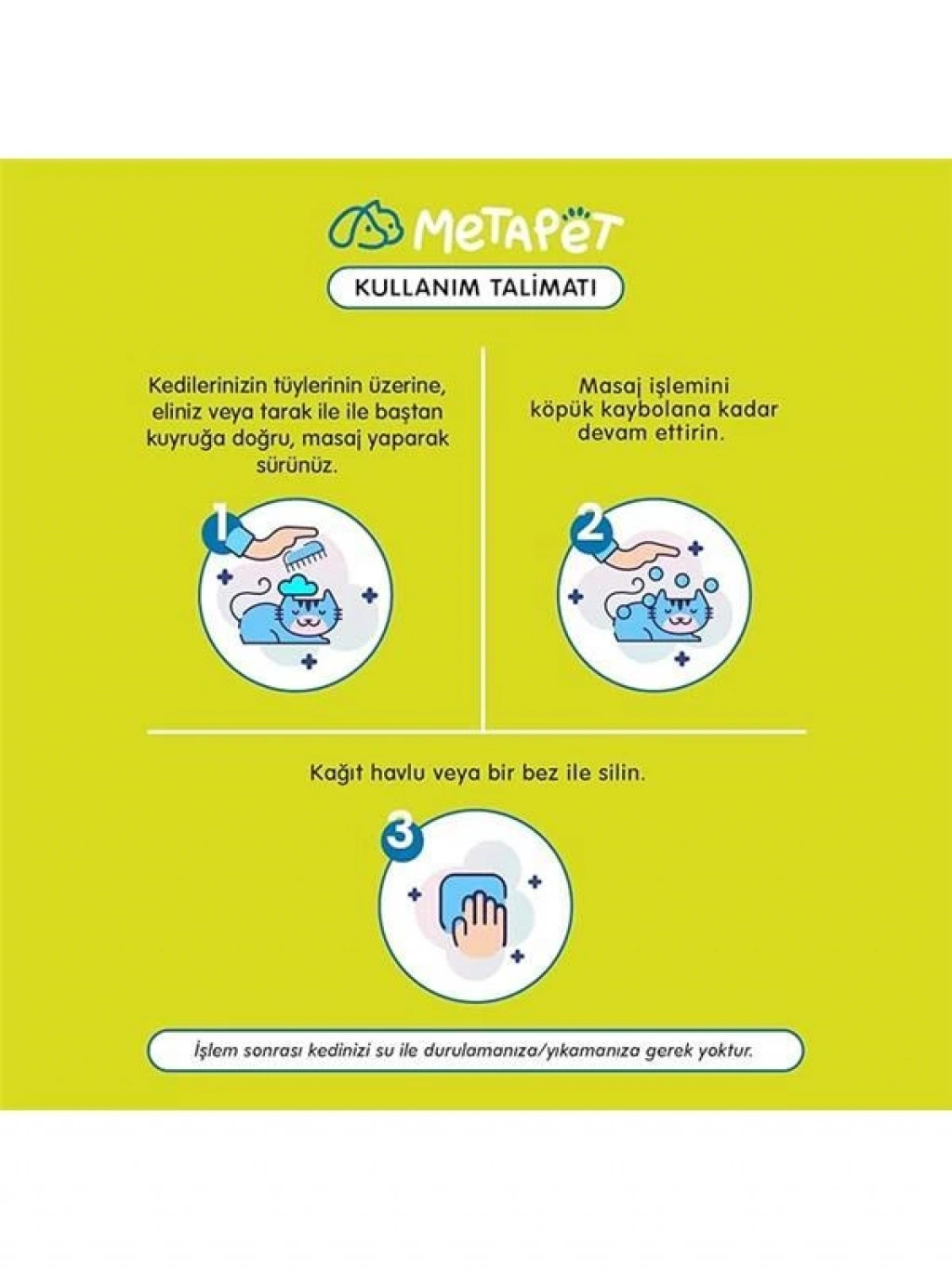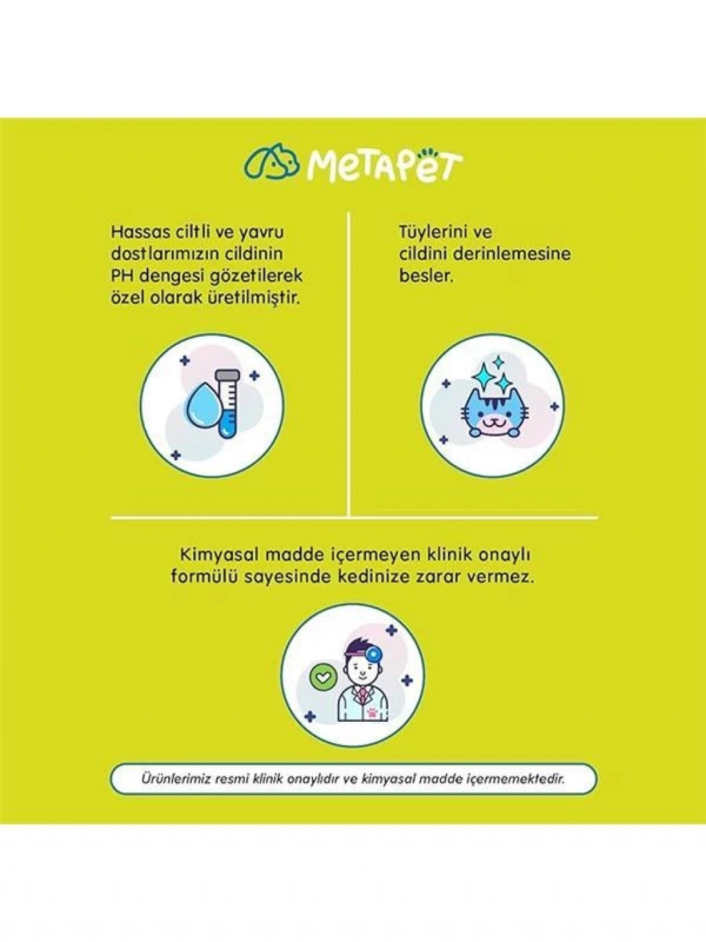 Bu ürün hakkında Yavru Kedinizin cildine özel hassas PH Dengesi ile hassas ciltlerine zarar vermeden doğal temizlik sağlar Tüy dökülmesini engellemeye yardımcı olur Aşırı yağlanmayı ortadan kaldırır Kedi kuru köpük şampuanlarımız çözüm odaklı serisi ile kedinizi su stresi yaşatmadan derinlemesine temizlemenizi sağlar KULLANIM TALİMATI Kedilerinizin tüylerinin üzerine gözlere temas ettirmeden eliniz ile baştan kuyruğa doğru masaj yaparak sürünüz Kağıt havlu veya bir bez ile silin Dilediğiniz sıklıkta kullanabilirsiniz Ürün Boyutu 200 ML ve Son Kullanma Tarihi 01022026