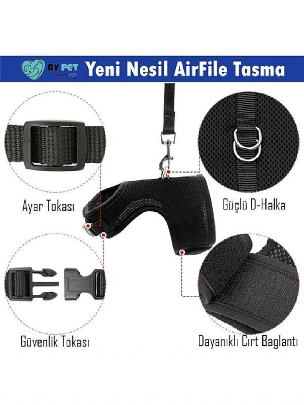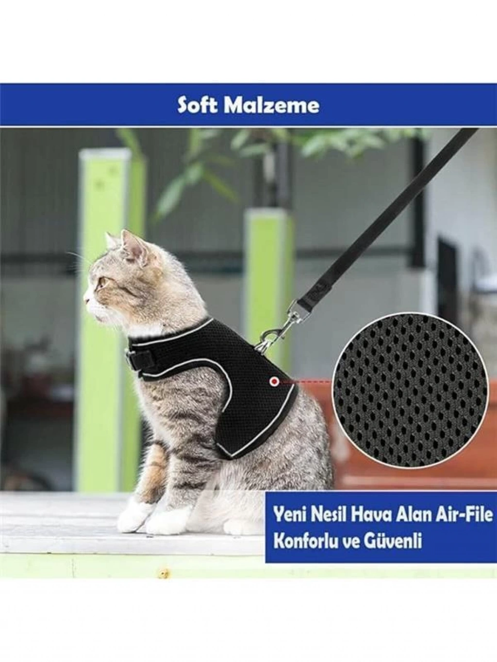 Yeni Nesil Nefes Alabilen Kedi Göğüs Tasması Seti (large, Siyah)