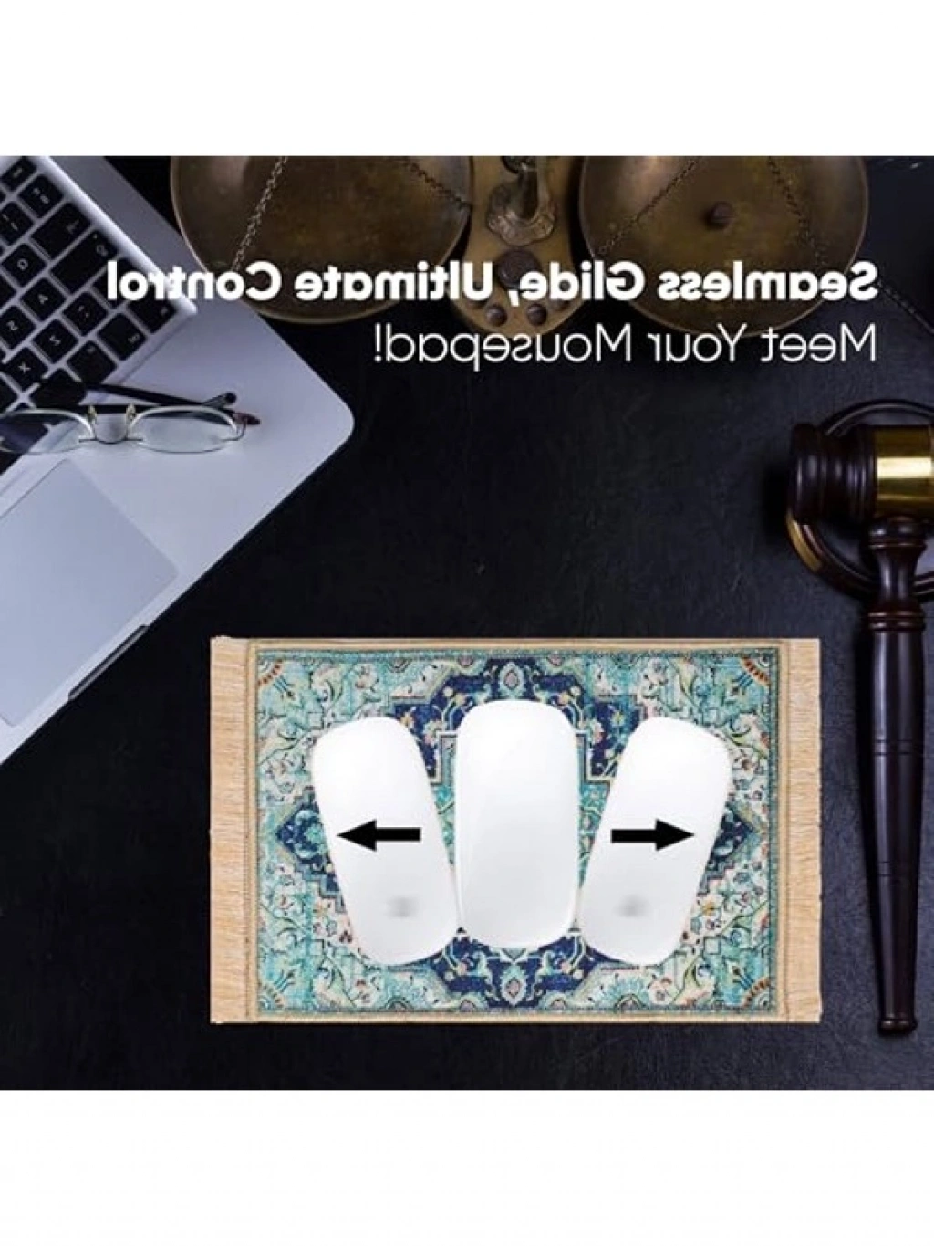 Dekoratif mini halı mousepad, çalışma alanınıza şıklık katarken, yumuşak dokusu ile konforlu bir kullanım sağlar. Küçük boyutu sayesinde masa düzeninizi korur.