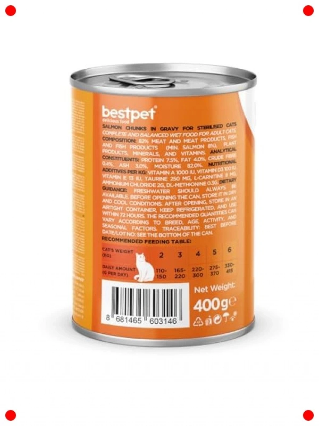 Yetişkin kediniz için özel olarak formüle edilmiş bu somonlu yaş mama seti, her öğünde taze ve lezzetli bir ziyafet sunar. İçeriğindeki taze somon parça etleri, kedinizin doğal protein ihtiyacını karşılarken, lezzetli sosuyla yeme deneyimini daha da keyifli hale getirir. Nem açısından zengin yapısıyla kedinizin su alımına katkıda bulunur ve genel sağlığını destekler. 400 gramlık 12 adet konserveden oluşan bu paket, uzun süreli ve pratik bir beslenme çözümü sunar. Kedinizin bayılacağı bu özel formülle onu mutlu edin.