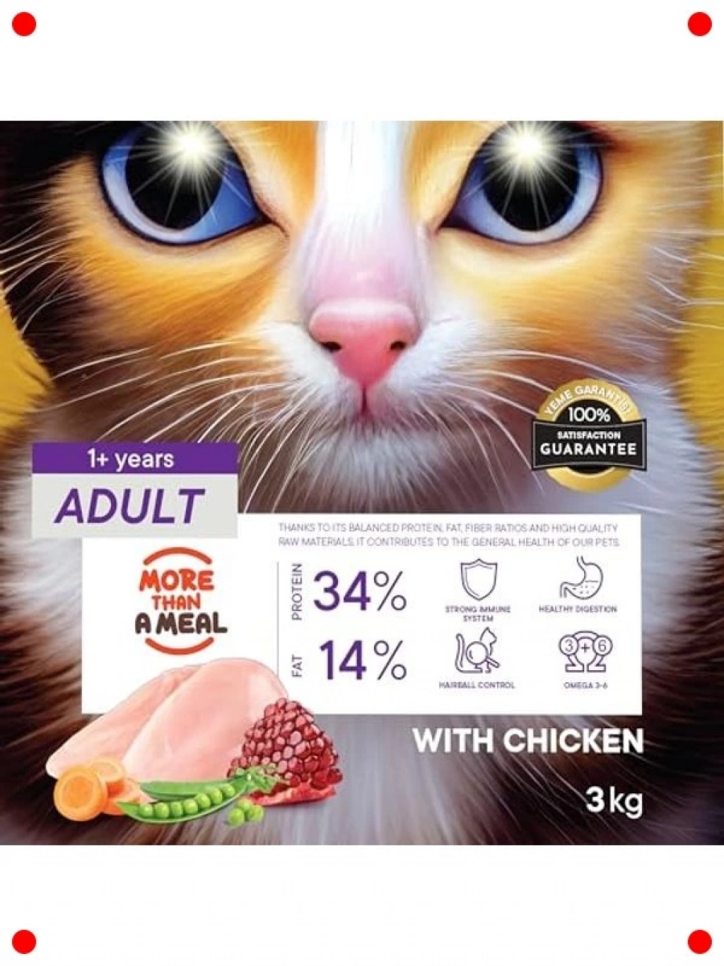 Yetişkin kedilerinizin günlük beslenme ihtiyaçlarını karşılamak üzere özel olarak formüle edilmiş bu tavuklu kuru mama, dengeli ve eksiksiz bir beslenme sunar. Yüksek kaliteli tavuk proteini, kedinizin güçlü kas yapısını korumasına yardımcı olurken, taurin gibi temel besin maddeleri kalp ve göz sağlığını destekler. İçeriğindeki omega yağ asitleri, parlak tüyler ve sağlıklı bir cilt için elzemdir. Sindirimi kolay formülü sayesinde kedinizin besinleri daha verimli kullanmasını sağlar. 3 kg'lık ekonomik paketi, uzun süreli kullanım ve uygun fiyat avantajı sunar. Kedinizin her öğünde sağlıklı ve lezzetli bir deneyim yaşamasını sağlar.