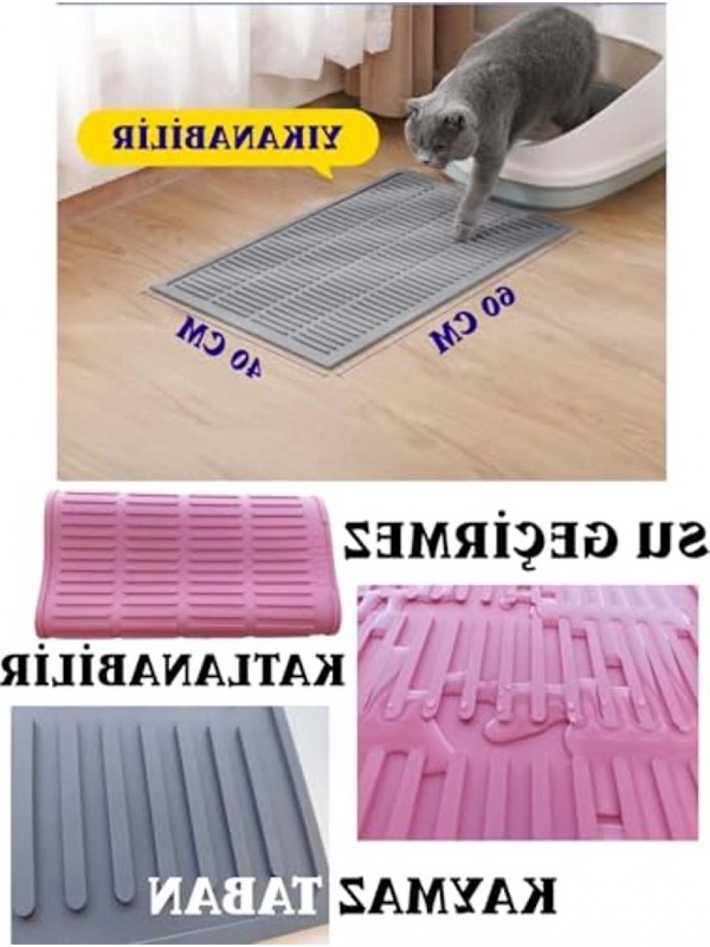 Yıkanabilir silikon kedi kumu matı, 60x40 cm boyutuyla geniş bir alan kaplar. Su geçirmez yapısı sayesinde kolayca temizlenir ve kedinizin kum kutusunu kullanırken dağınıklığı önler. Esnek ve kaymaz tasarımı ile konforlu bir kullanım sunar.