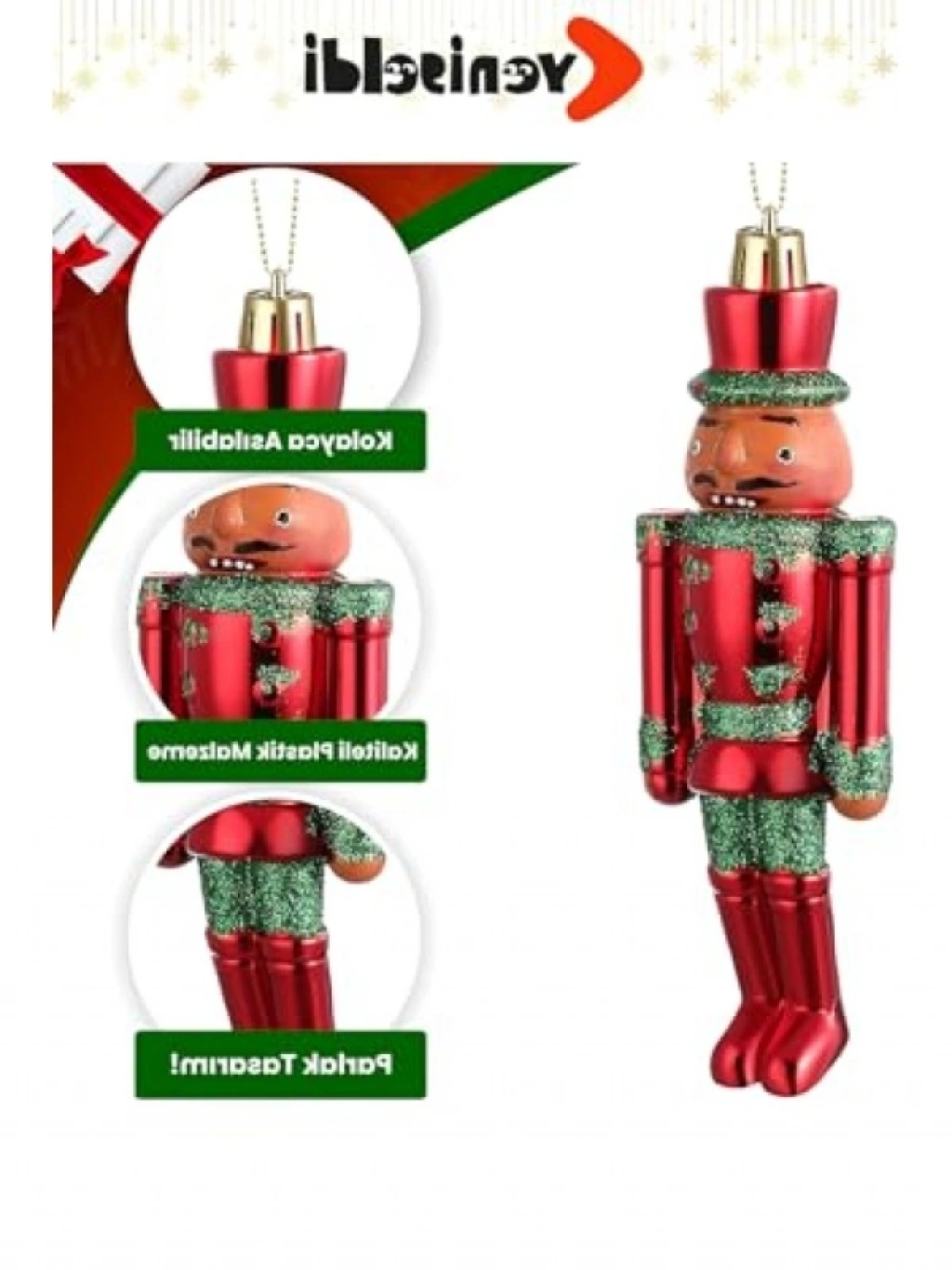 Yılbaşı dekorasyonunuza renk katacak bu 3 adet fındıkkıran asker süs seti, 13 cm boyutuyla dikkat çekiyor. Renkli tasarımı ile yılbaşı ağacınıza veya evinizin farklı alanlarına asabilirsiniz. Bu dekoratif figürler, yılbaşı ruhunu evinize getirecek ve misafirlerinizi etkileyecek. Eğlenceli ve nostaljik bir atmosfer yaratmak için harika bir tercihtir.