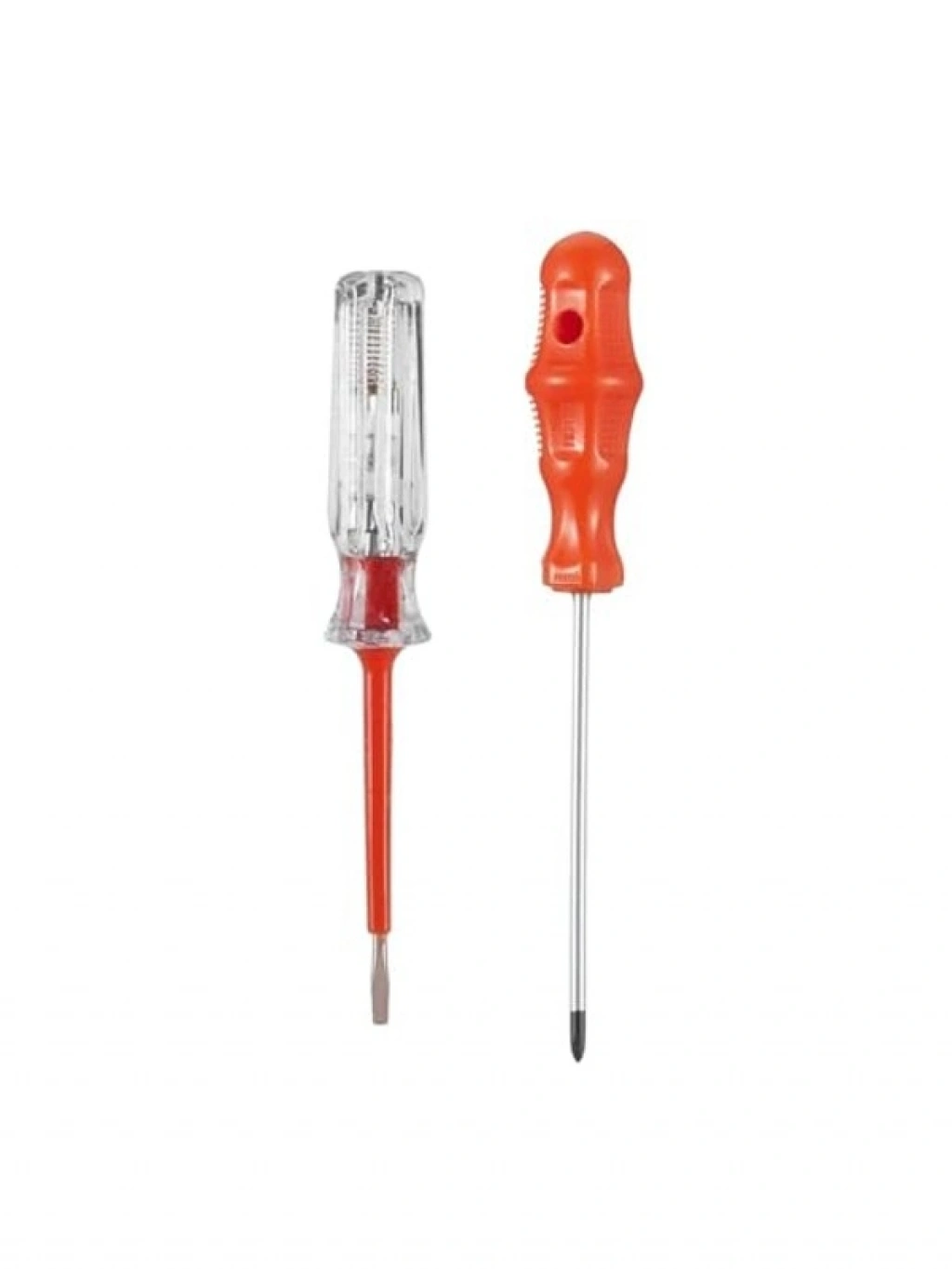 Yıldız tornavida ve kontrol kalemi seti, günlük tamir işleriniz için ideal bir kombinasyondur. Ergonomik tasarımı ve kaymaz tutma sapları ile konforlu bir kullanım sunar. Şeffaf gövdeli kontrol kalemi, elektrik devrelerinde güvenli test yapmanıza olanak tanırken, dayanıklı çelik uçlu yıldız tornavida hassas işler için uygundur.