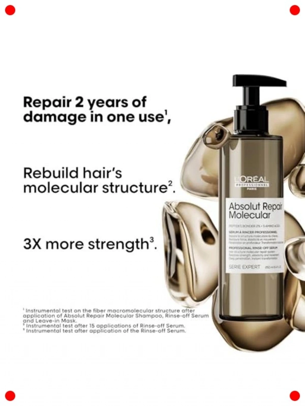 Aşırı yıpranmış ve hasar görmüş saçları moleküler düzeyde onarmak için geliştirilmiş bu durulanan serum ile saçlarınıza yoğun bakım yapın. Saç tellerinin derinliklerine nüfuz ederek iç yapısındaki bağları güçlendirmeye yardımcı olur, böylece saçın eski gücünü ve elastikiyetini geri kazandırır. Yıpranmışlığı gözle görülür şekilde azaltır, saçlara ipeksi bir yumuşaklık ve parlaklık verir. Şampuan sonrası nemli saçlara uygulayın, kısa bir süre bekletip durulayarak kolayca etkisini gösterir. 250 ml'lik bu özel formül, saç kırılmasını ve kopmasını azaltarak daha sağlıklı uzamayı destekler. Saçlarınıza profesyonel bir dokunuş katın.