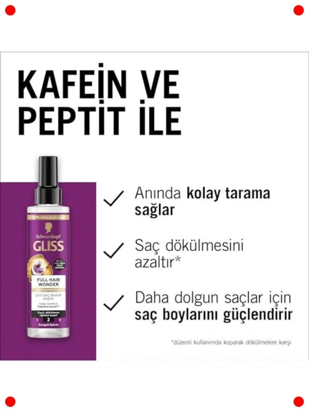 İnce telli ve cansız saçlara anında yoğun hacim ve dolgunluk kazandıran sıvı saç kremi ile saçlarınızda fark yaratın. 200 ml'lik bu hafif formül, saç tellerini ağırlaştırmadan kökten uca kaldırır, dolgun ve canlı bir görünüm sağlar. Saçlarınızın kolayca taranmasına yardımcı olur, elektriklenmeyi önler ve yumuşak bir dokunuş kazandırır. Durulama gerektirmeyen pratik kullanımı sayesinde duş sonrası hızlıca uygulayabilir, saçlarınıza istediğiniz şekli kolayca verebilirsiniz. Gün boyu süren hacimli ve göz alıcı saçlar için ideal bir seçimdir.