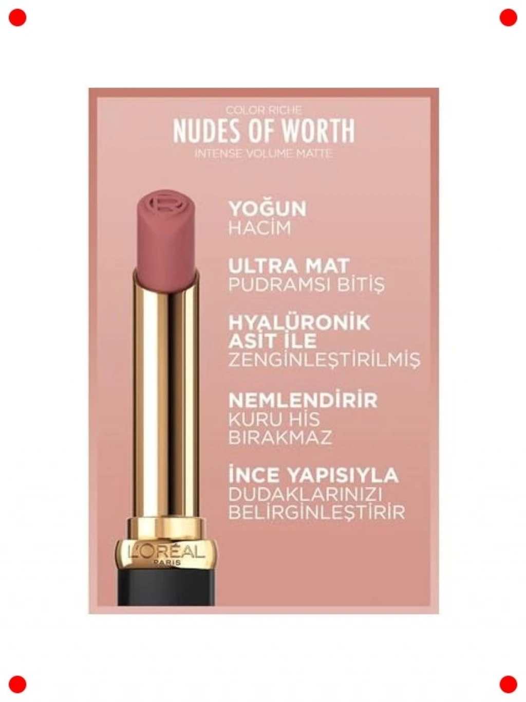 Dudaklarınıza anında dolgun ve mat bir görünüm kazandırın. Bu yoğun hacimli mat ruj, tek sürüşte zengin renk pigmentasyonu sunarak dudaklarınızı belirginleştirir. Özel formülü sayesinde dudaklarda kuruluk hissi yaratmadan konforlu bir kullanım sağlar. Uzun süre kalıcı etkisiyle gün boyu taze ve etkileyici bir görünüm sunar. Nude tonu, hem gündüz hem de gece makyajına kolayca uyum sağlar, doğal ama çarpıcı bir ifade yaratır. Dudaklarınızın daha dolgun ve pürüzsüz görünmesine yardımcı olur. Makyaj çantanızın vazgeçilmezi olacak bu ruj ile her anınızda şıklığı yakalayın.