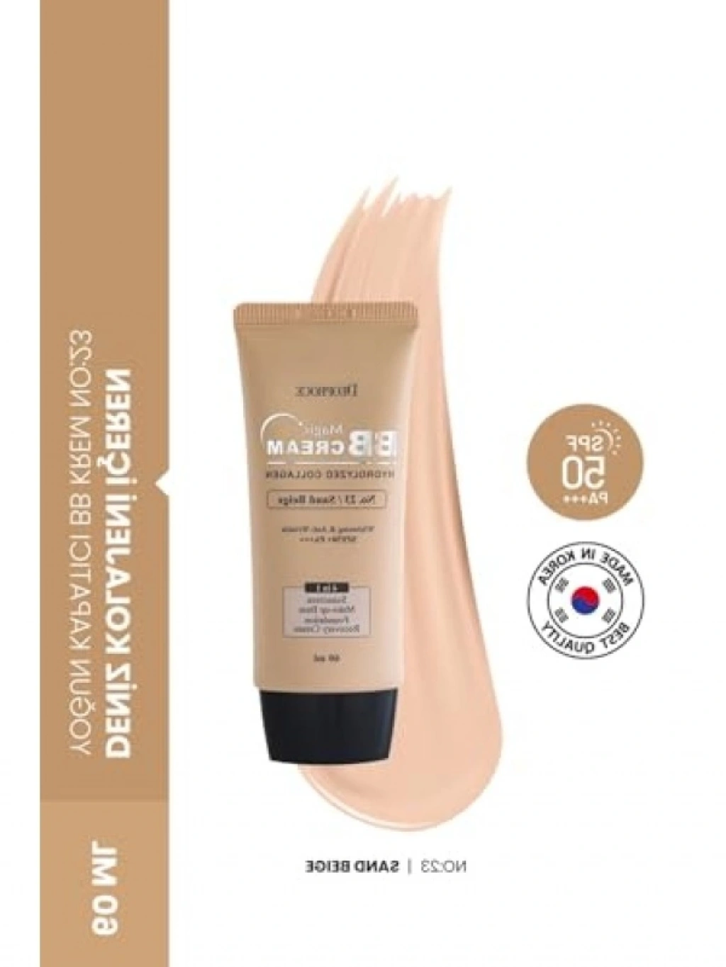 Deniz kolajeni içeren bu yoğun kapatıcı BB krem, hafif ve kalıcı formülüyle gün boyu tazelik sunar. UV koruması sağlayan SPF50 PA formülü, cildinizin dış etkenlerden korunmasına yardımcı olurken, doğal bir görünüm elde etmenizi sağlar. Cilt tonunu eşitleyerek, sağlıklı bir ışıltı kazandırır.