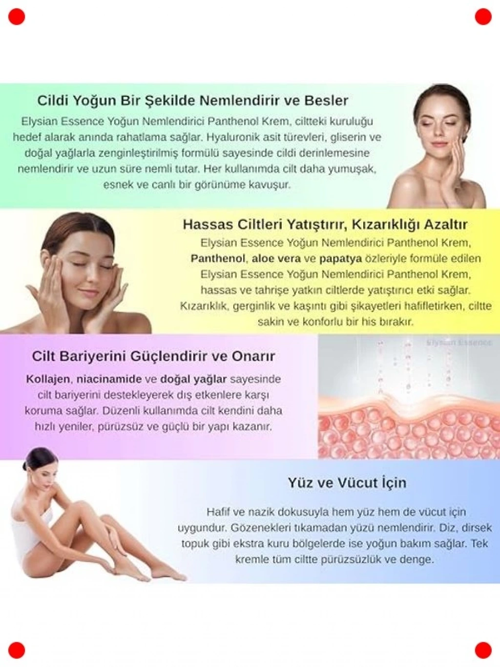 Kuru ve hassas ciltler için özel olarak geliştirilmiş bu 6'lı yoğun nemlendirici krem seti, cildinize derinlemesine bakım yapar. Panthenol, organik argan yağı, shea butter yağı, propolis ve kolajen gibi zengin içeriklerle cildin bariyerini güçlendirir, nem dengesini sağlar ve esnekliğini artırır. Küçük boyları sayesinde çantanızda, cebinizde veya seyahatlerinizde kolayca taşıyabilirsiniz. Cildi yatıştırır, tahrişi azaltır ve uzun süreli konfor sunar. Cildinizin ihtiyaç duyduğu yoğun nemlendirmeyi her an ve her yerde sağlayarak, daha pürüzsüz ve sağlıklı bir görünüme kavuşmasına yardımcı olur.