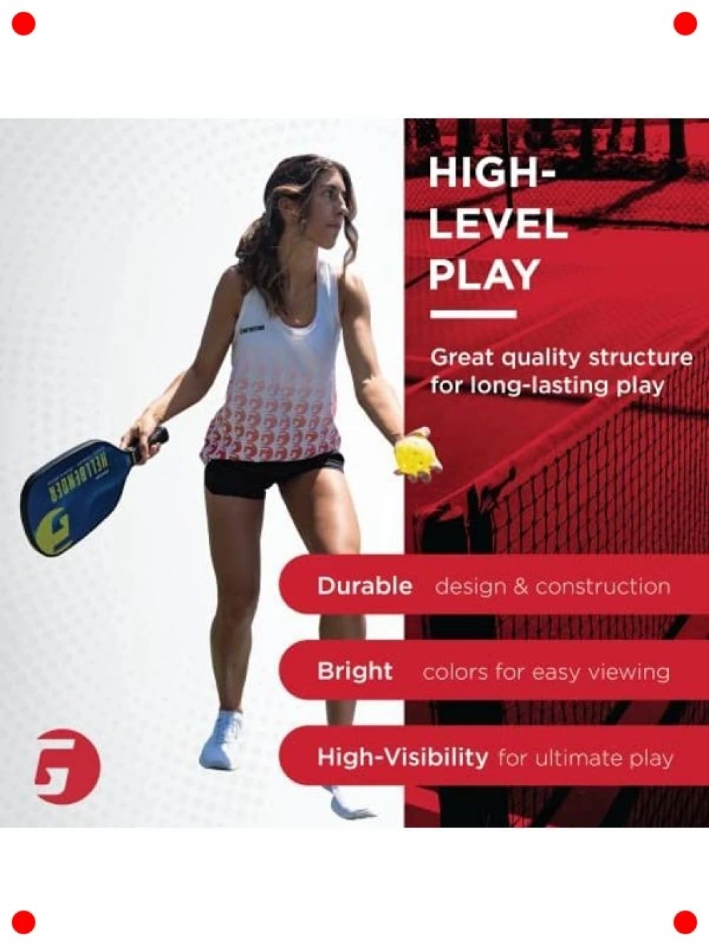 İç mekan pickleball oyunlarınız için özel olarak tasarlanmış bu yüksek görünürlüklü toplar, oyun deneyiminizi iyileştirmek için idealdir. Optik yeşil rengi sayesinde her türlü ışık koşulunda kolayca fark edilir, böylece vuruşlarınızı daha hassas yapabilirsiniz. Dayanıklı plastik malzemeden üretilmiş olup, yoğun kullanıma ve sert vuruşlara karşı dirençlidir, uzun ömürlü bir kullanım sunar. Denge ve tutarlılık sunan yapısıyla oyunun kalitesini artırır ve daha adil bir rekabet ortamı sağlar. Hem antrenman hem de maçlar için uygundur. Farklı paket seçenekleriyle ihtiyacınıza göre uygun miktarda topa sahip olabilirsiniz.