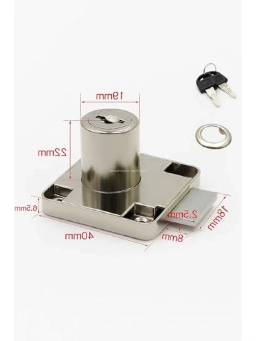 Bu kare çekmece kilidi, 22 mm uzunluğunda ve 4x4 cm ölçülerindedir. 2 anahtarlı sistemi ile ekstra güvenlik sağlar ve kolay kurulum imkanı sunar. Çelik gövdesi ile dayanıklıdır. Ofis ve ev çekmeceleri için idealdir. Paslanmaya karşı dayanıklı malzeme ile uzun ömürlü kullanım sunar.