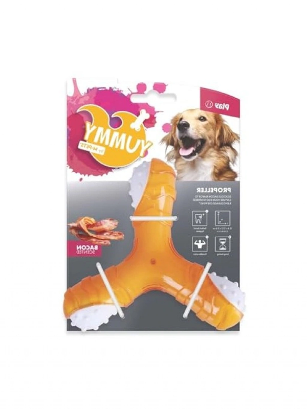 Yummy Propeller et aromalı kauçuk köpek oyuncağı, dayanıklı yapısı ve güvenli malzemeleri ile evcil hayvanların keyifli vakit geçirmesine yardımcı olur. Toksik olmayan içerikleri sayesinde güvenle kullanılabilir.