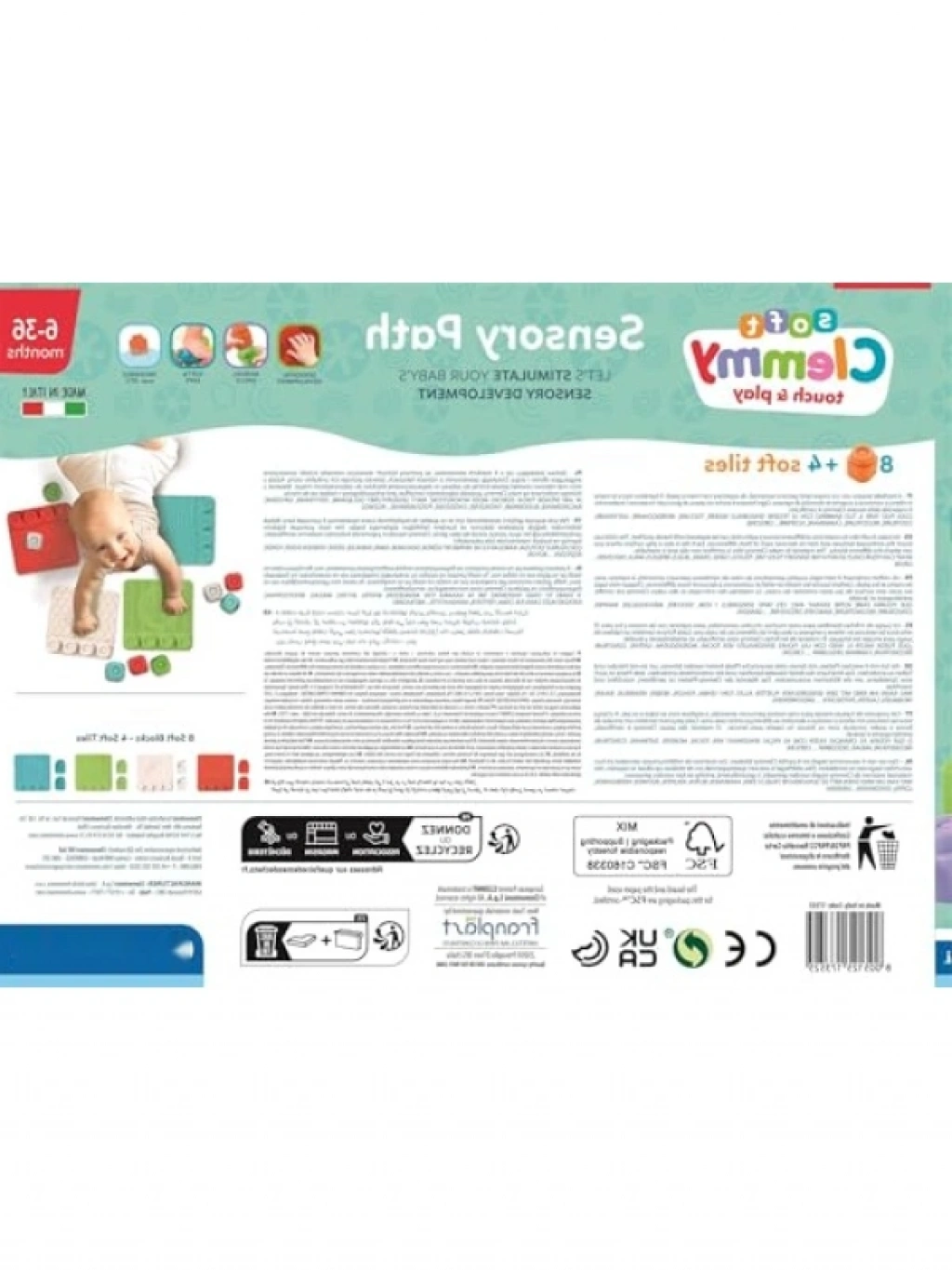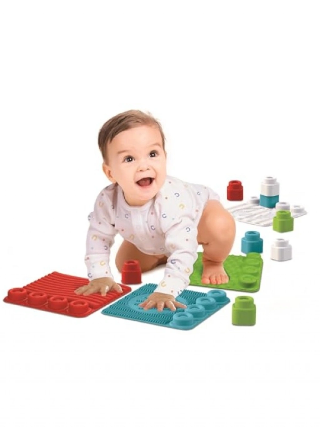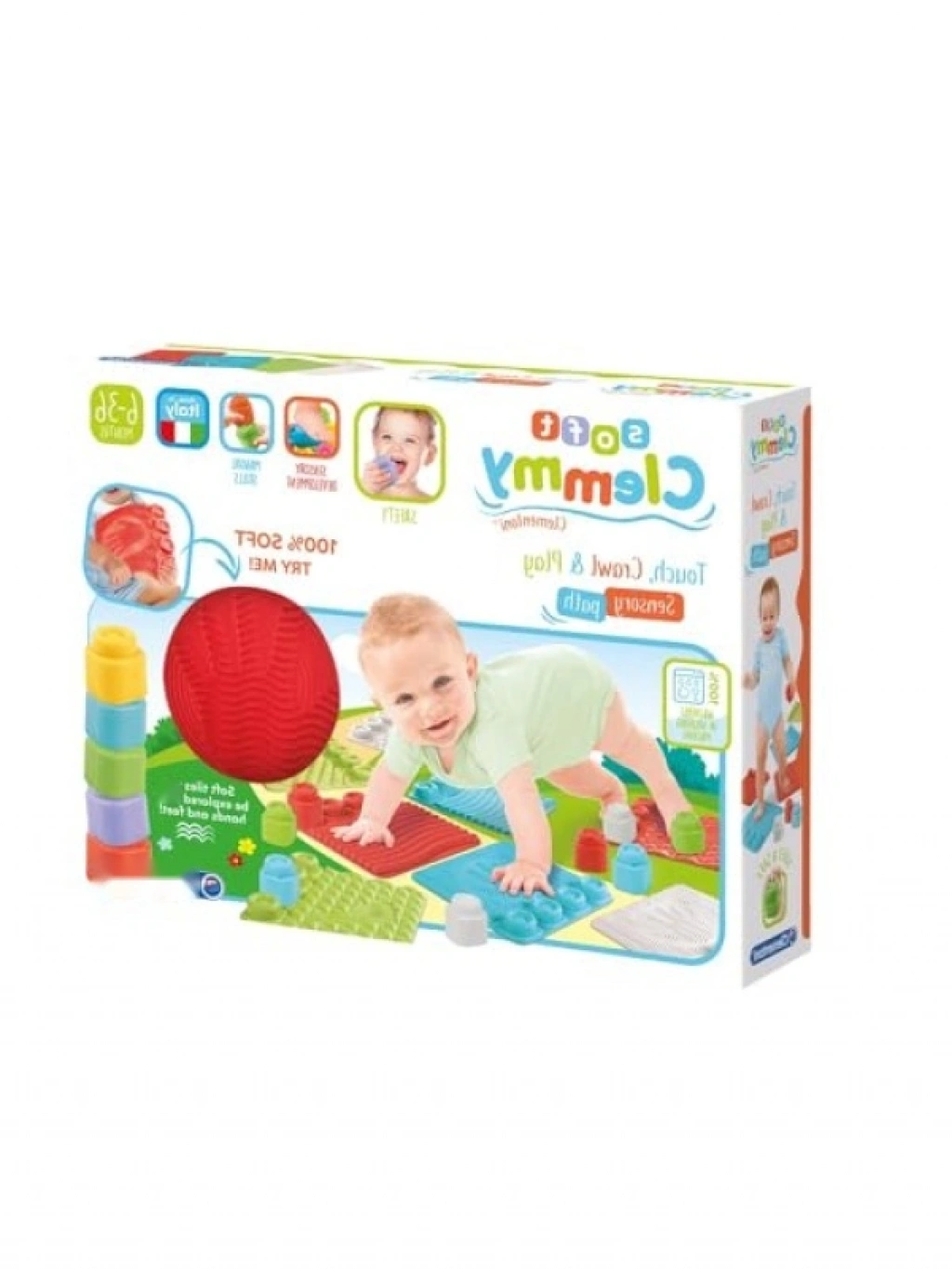 Yumuşak Clemmy blokları ve duyusal halı seti, bebeğinizin dokunma algısını geliştirmek için tasarlanmıştır. Farklı kabartmalı dokulara sahip parçalar, bebeğinizin ince motor becerilerini desteklerken eğlenceli oyun saatleri sunar. Parçaların üzerindeki eğlenceli şekiller sayesinde, bebekler birçok farklı kule oluşturabilir. Güvenli ve eğitici bir oyuncak seçeneği!
