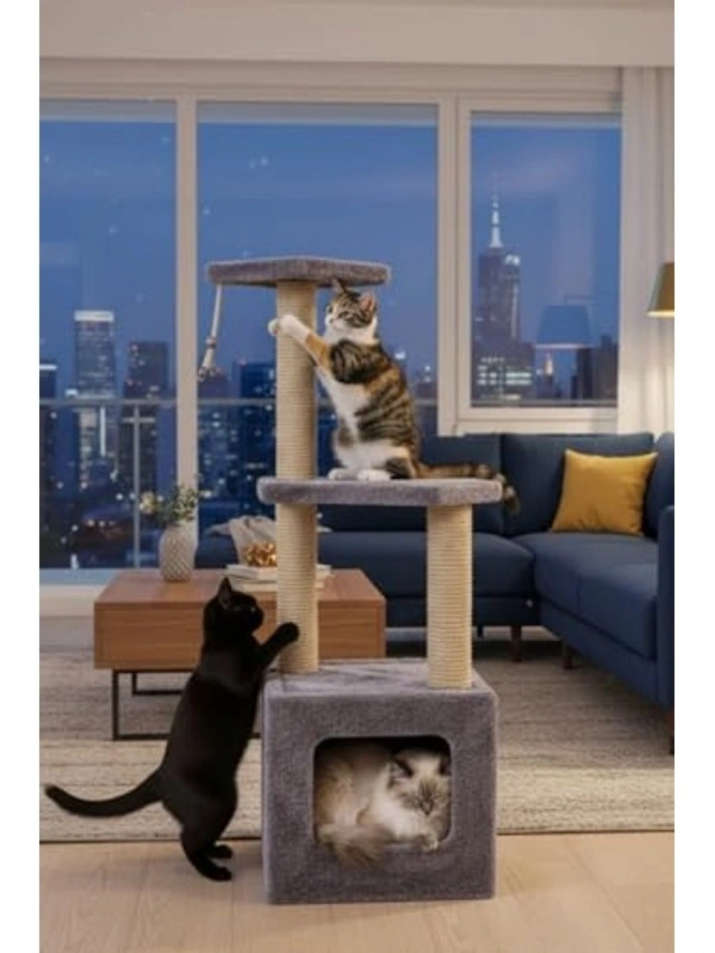 Yuvalı kare ev kedi tırmalama alanı, güzel gri tasarımı ile hem estetik hem de işlevseldir. Antibakteriyel özellikleri sayesinde kedinizin sağlığını ön planda tutar. 115 x 35 x 30 cm ölçülerindeki bu ürün, sıcak tutan ve kolayca silinebilir bir dokuya sahiptir. Tırmalama direkleri, uzun ömürlü kullanım için kaliteli halatla sarılmıştır.