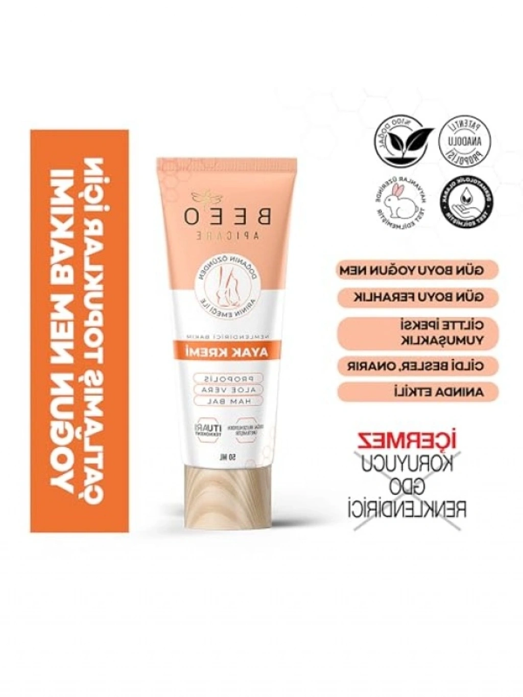 Bu ayak kremi, propolis, ham bal, balmumu ve bitkisel yağlar ile zenginleştirilmiş özel formülü sayesinde cildinizi besler ve bakım sağlar. Cildin doğal koruyucu bariyer etkisini artırarak, nem ve yağ dengesini korur. Dermatolojik olarak test edilmiş, paraben ve renklendirici içermez. Hassas ciltlerin kullanımına uygun olan bu ürün, hipoalerjenik özelliği ile dikkat çeker.