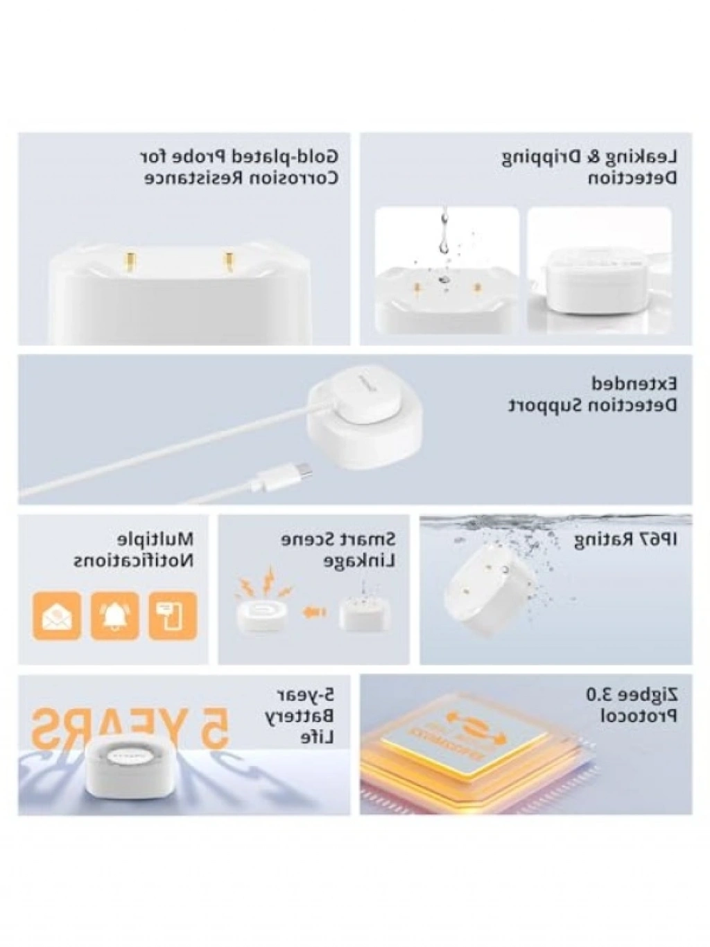 Bu güvenilir su kaçak sensörü, su sızıntılarını anında tespit ederek evinizi korur. ZigBee teknolojisi ile entegre çalışan bu sensör, suyun varlığını algıladığında uyarı verir. Ev güvenliği için önemli bir yardımcıdır ve su hasarını önlemek için etkili bir çözüm sunar.